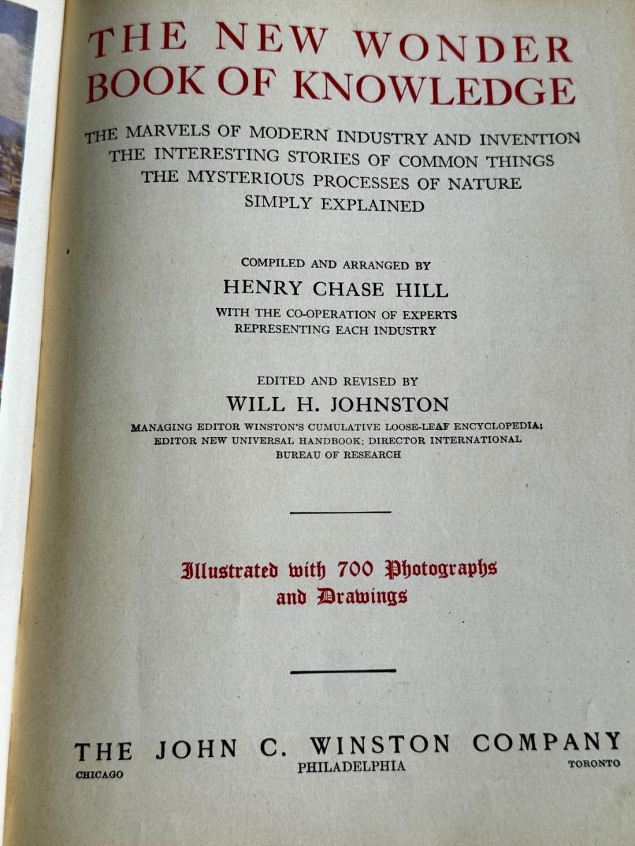LOT 29 - Wonder Book of Knowledge - features 700 Photographs and Drawings. The Marvels of Modern industry and invention, the interesting stories of common things and the mysterious process of nature simply explained. 1936 copyright. This book is full of fabulous illustrations that are works of art. Includes writing on first inside cover page/1st page. No odors, wear to covers. Media mail shipping.