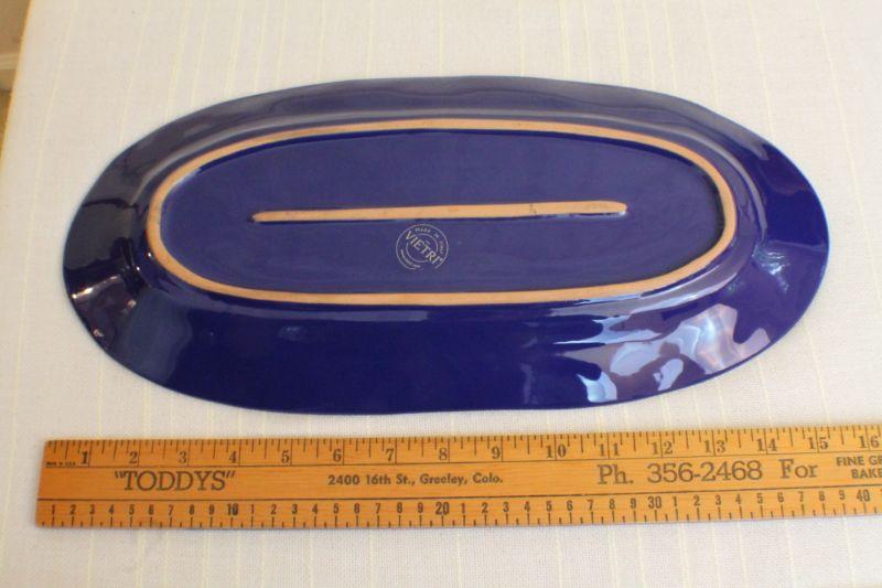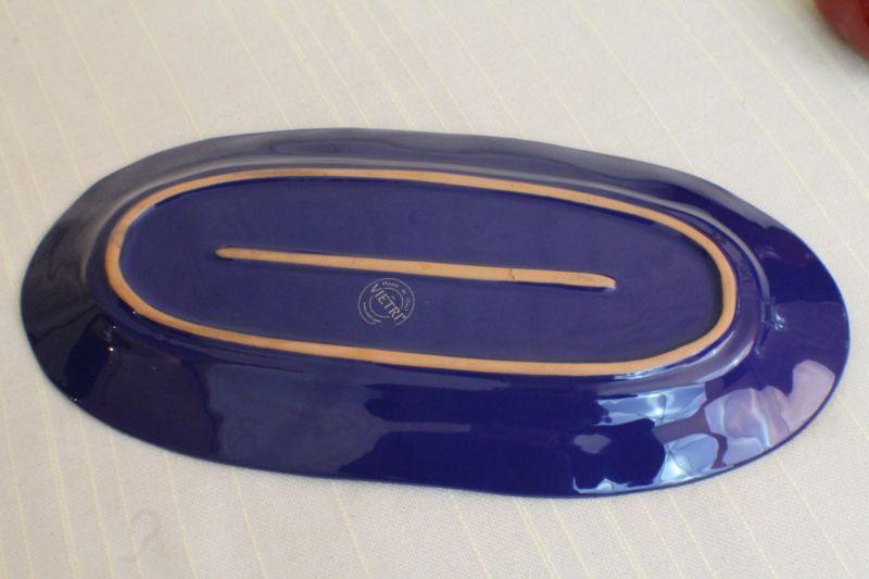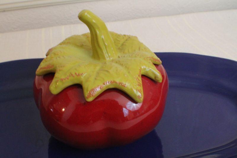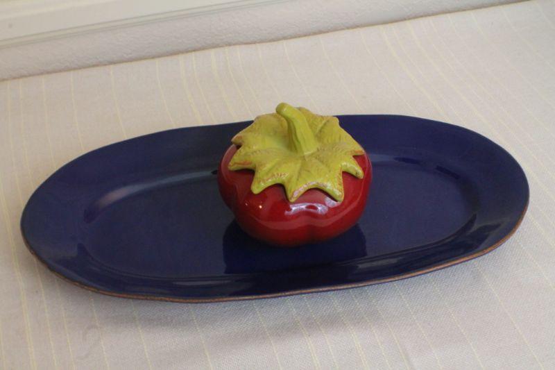 LOT #290: VIETRIâ„¢ Dark Blue Serving Dish w/ Ceramic Tomato (unmarked VIETRIâ„¢)