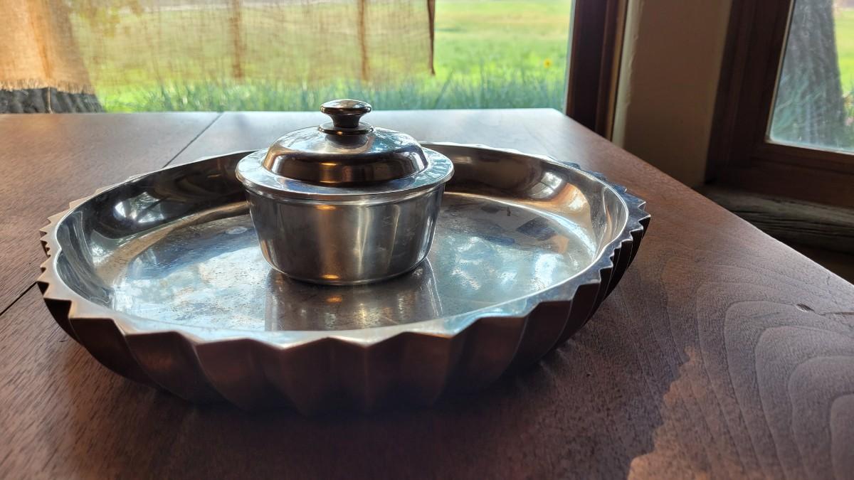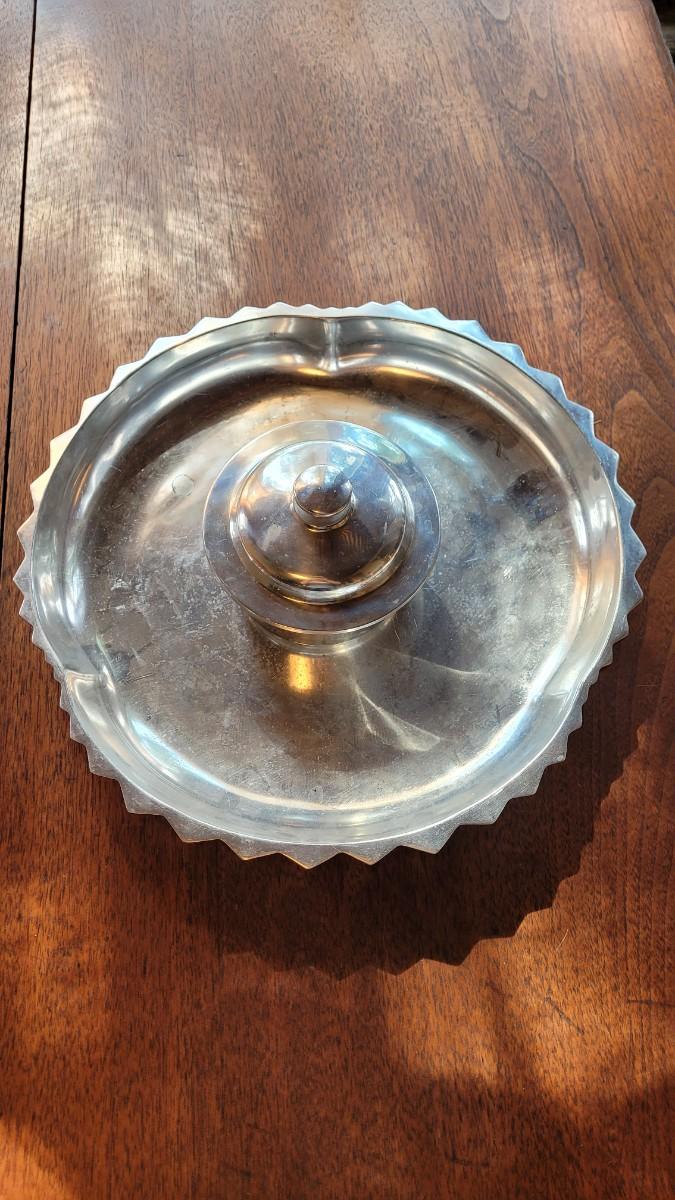 Lot 290: Heavy Aluminum Platter and Covered Bowl