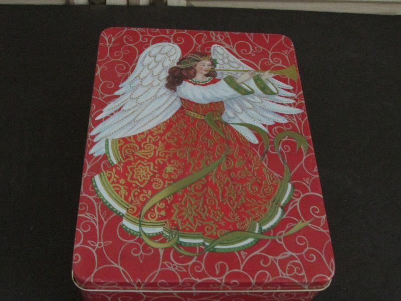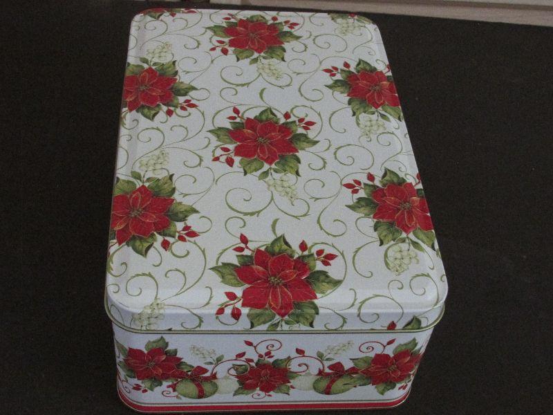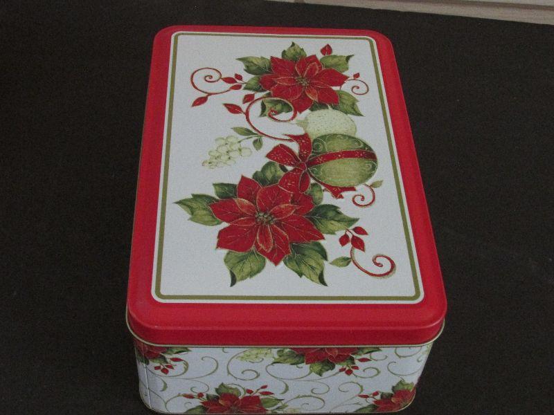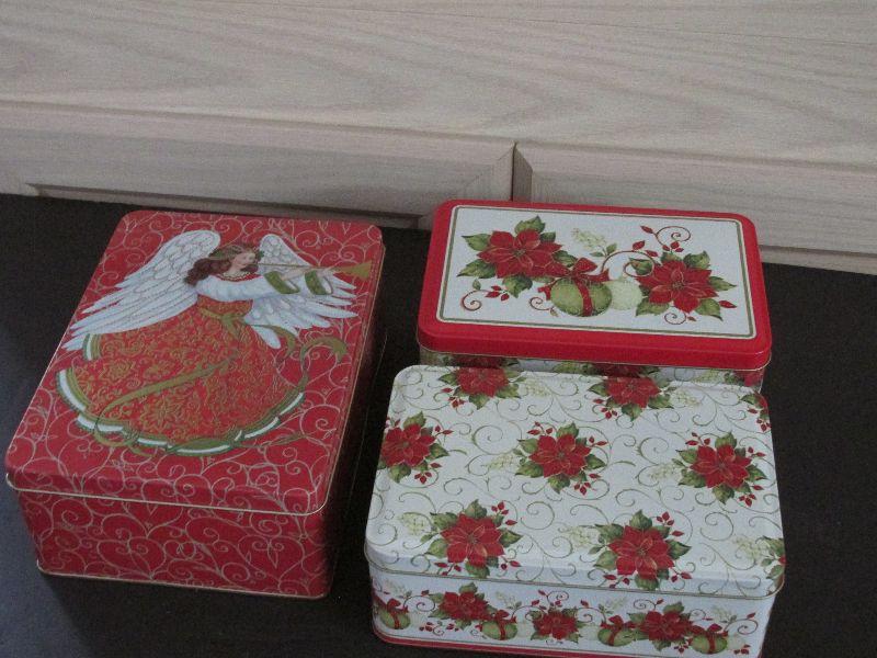 Three rectangular Christmas themed tins.