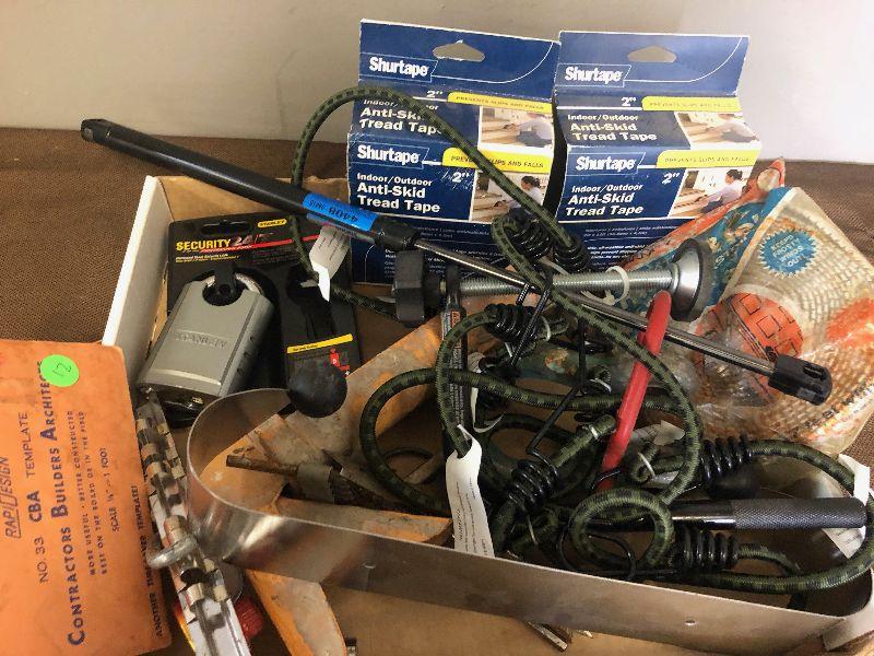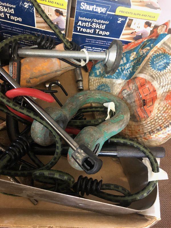 Lot# 290 Garage Lot; calk gun, tape, tow hook weather strip