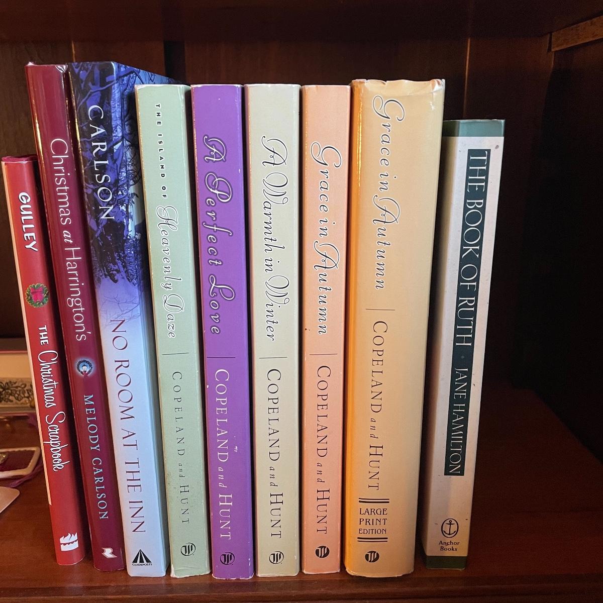 This lot offers a nice selection of fifteen hard cover books by Jan Karon, author of a #1 New York Times Best Seller. The Lot also includes one hard cover and four paper back novels by Lori Copeland and Angela Hunt. Finally, this Lot features two beautiful metal bookmarks and more books. See images. Local pick up only.