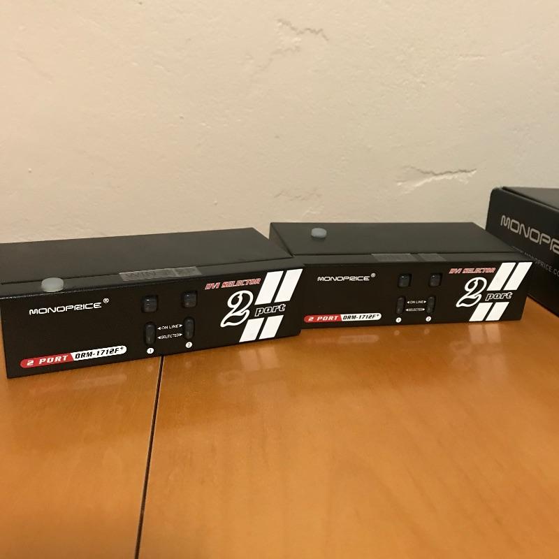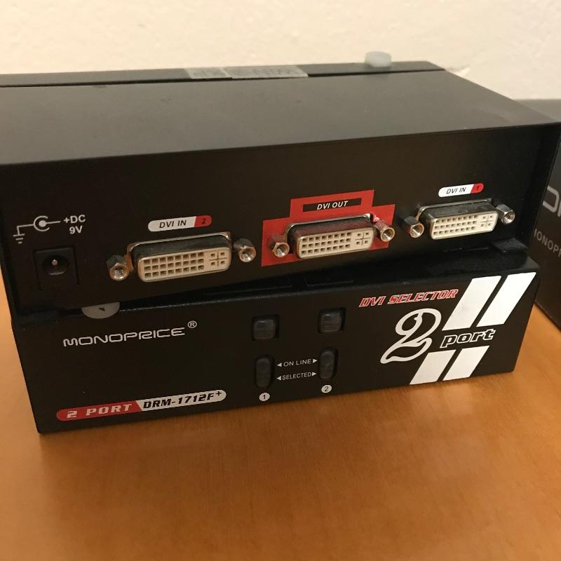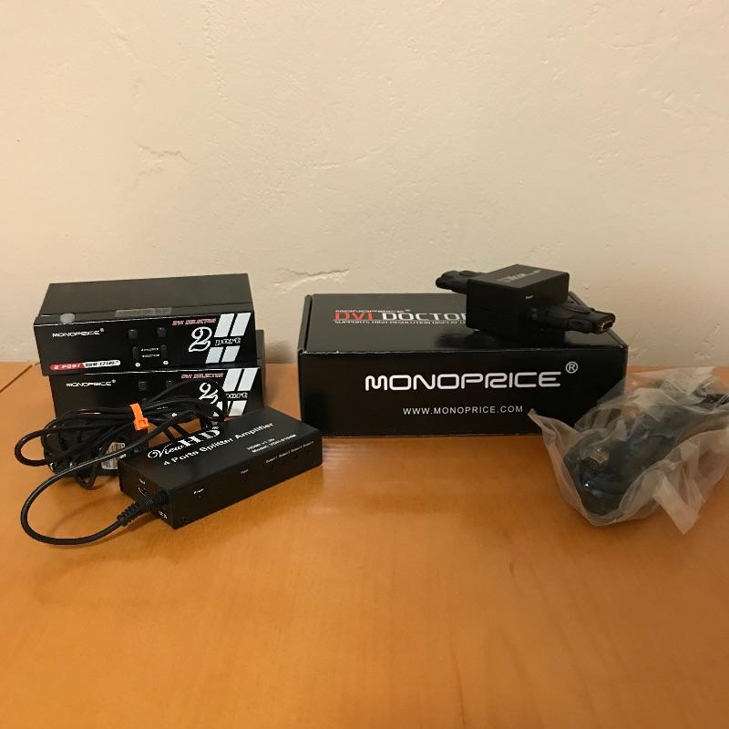 Wow! Two MonoPrice DRM-1712F two port DVI Selectors with DVI Doctor and View HD four ports Splitter Amplifier. The two MonoPrice DRM-1712F two port DVI Selectors give you the convenience of sharing two source devices with one display AND the ViewHD, model VDH-0104M, offers the four sources! The MonoPrice DDX-01 DVI Doctor and HDMI accessories with user manual. See photos. Shipping available.