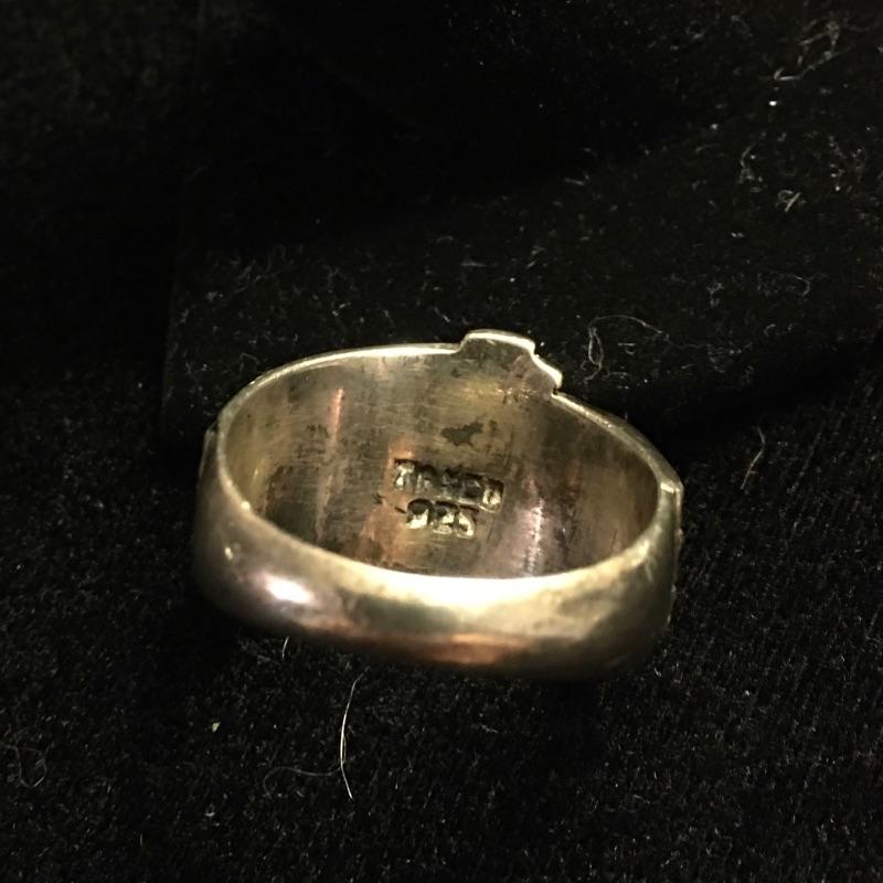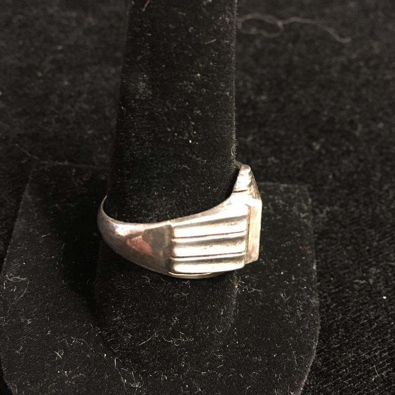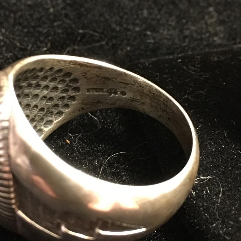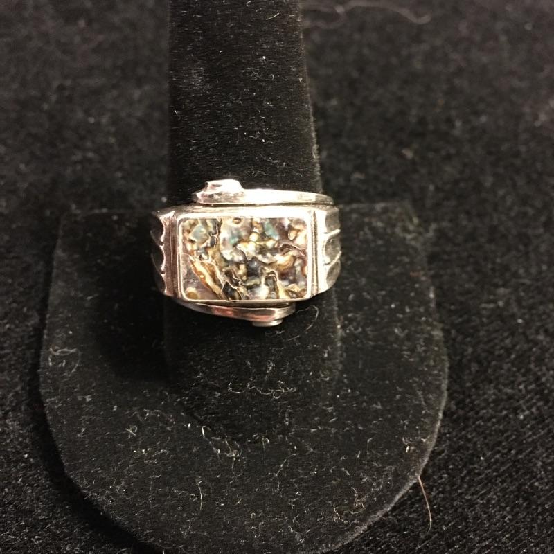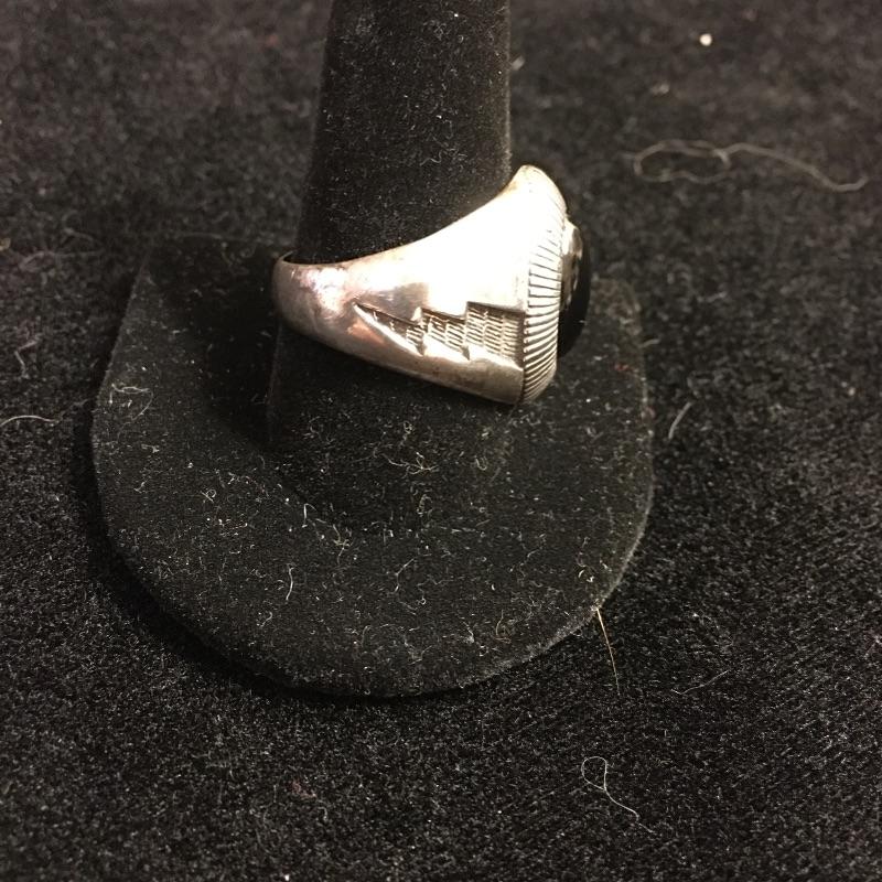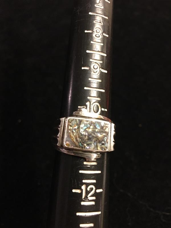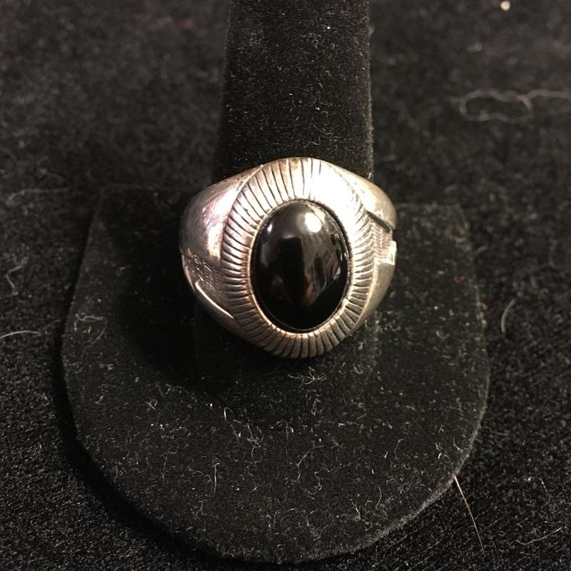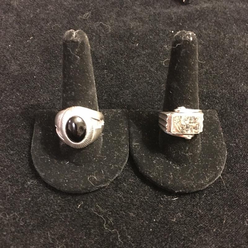 Pair of 925 rings in larger sizes. Could even be Men's rings. Ring with black stone is likely Onyx and is marked ster. The second ring in the lot has multicolored stone is marked 925. For the classic look go with the black and if you are feeling adventurous wear the multicolored ring that almost seems to shimmer in green.