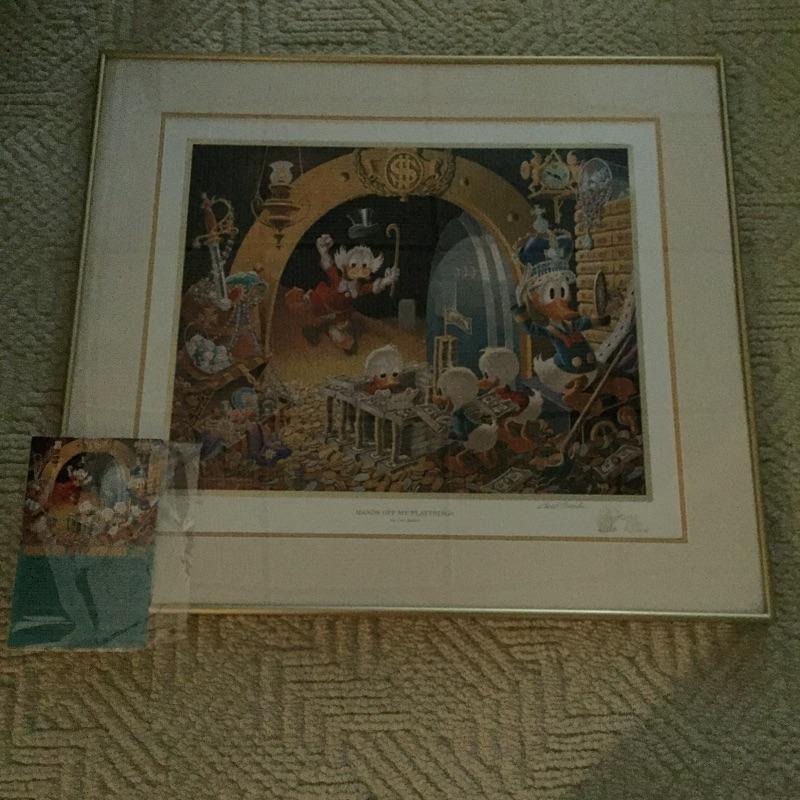 This Lithograph is part of a limited edition, number 91 of 100 and signed depicting Uncle Scrooge and his nephews. This colorful piece of art comes in a metal, matted frame and has a COA.