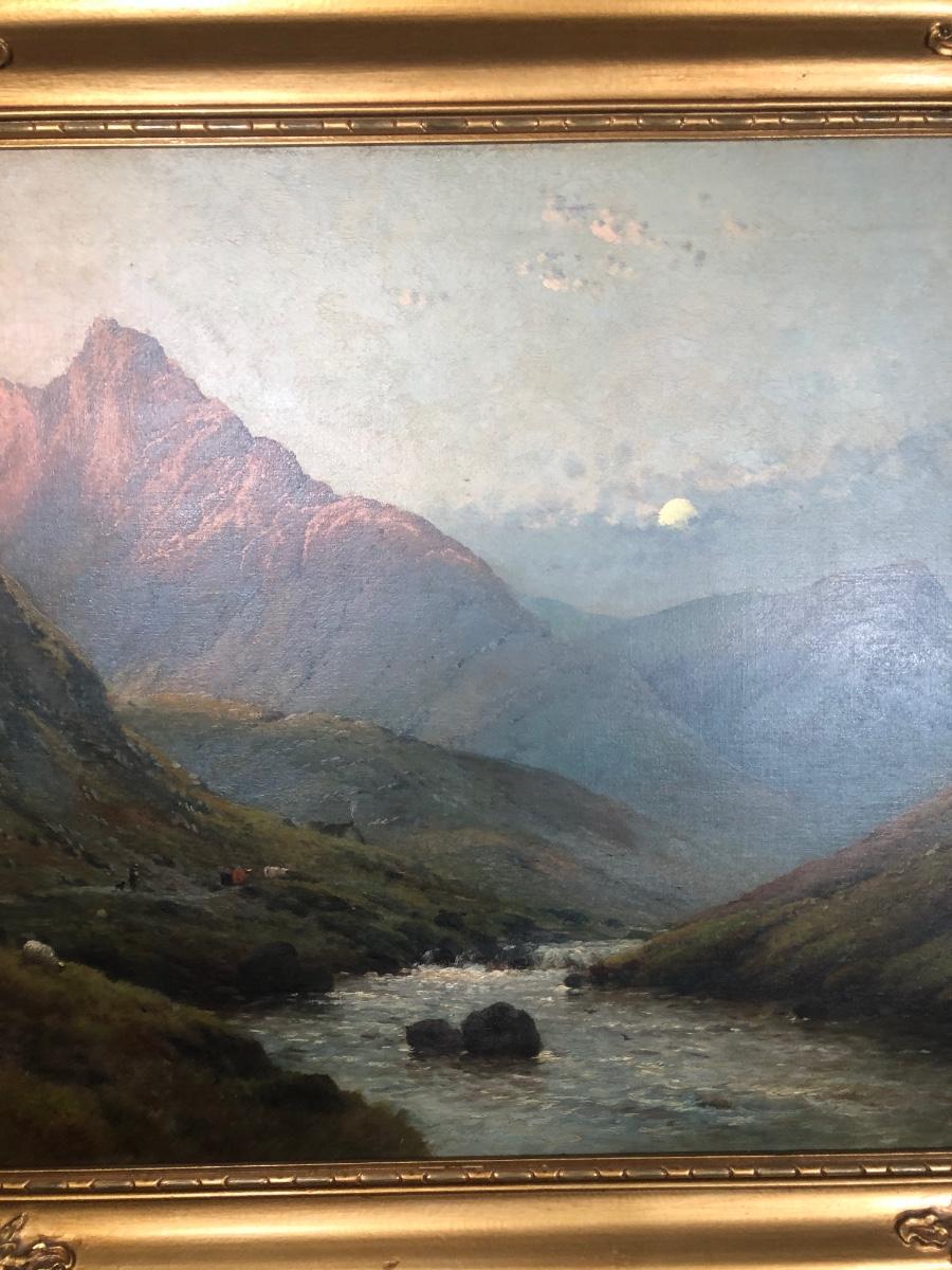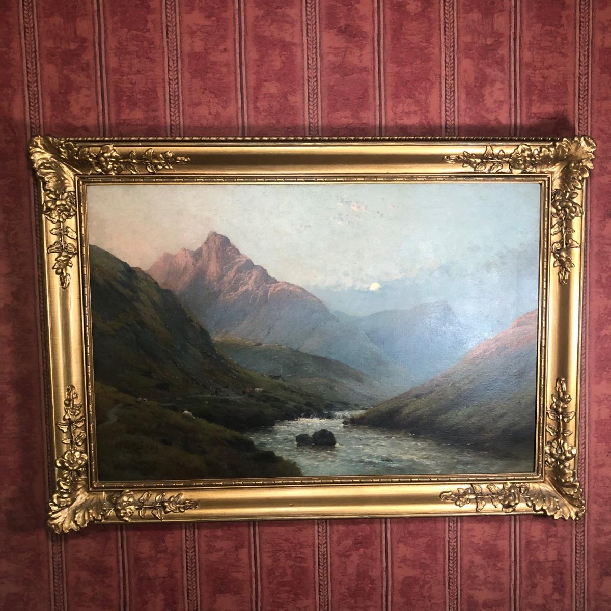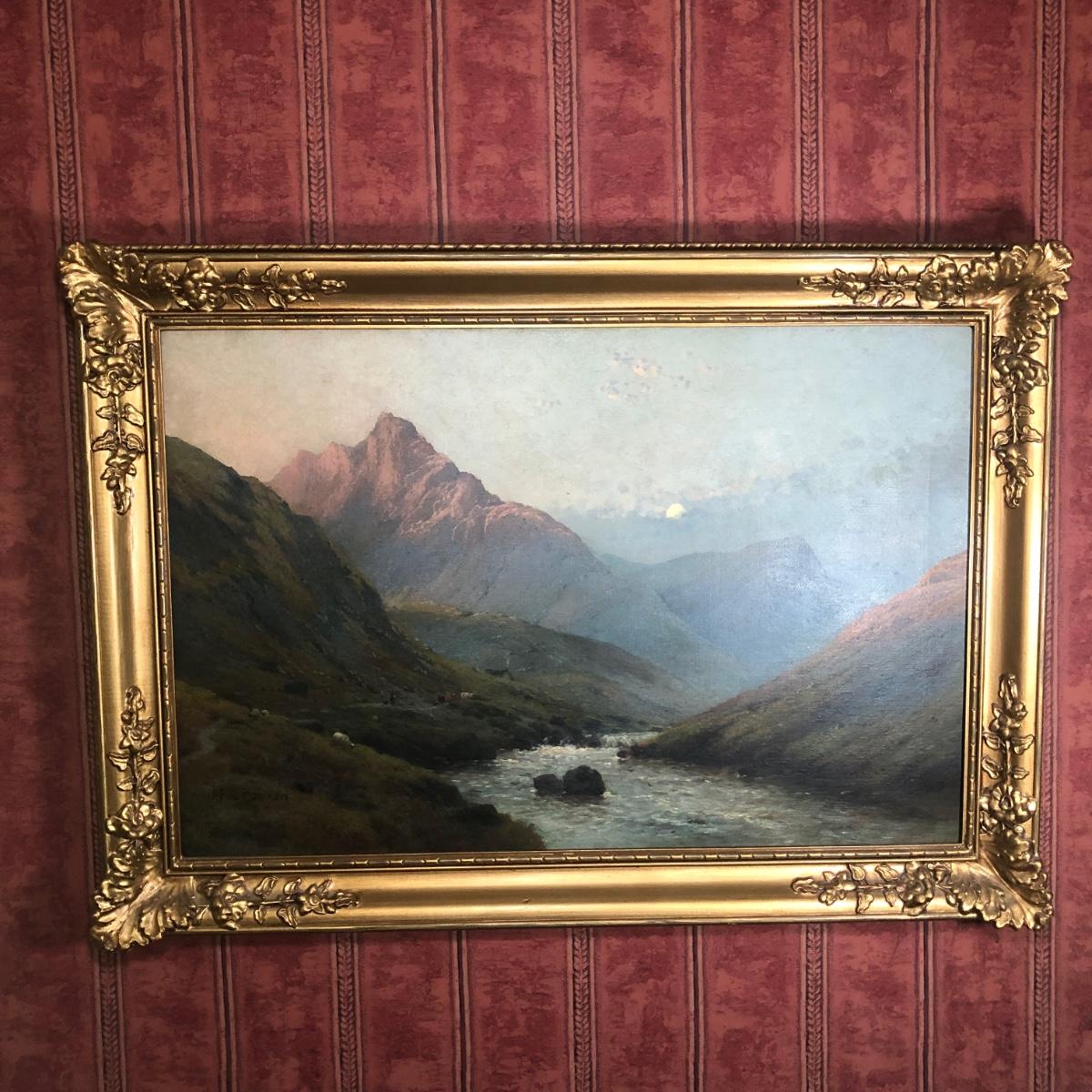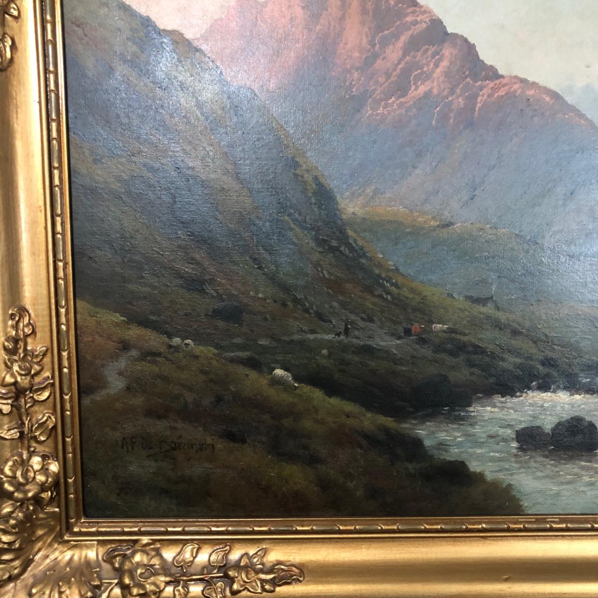 LOT 290S: "On the Ogwen Moors" by Alfred de Breanski (English 1852-1928) - Signed & Framed Antique North Wales Mountain Landscape Oil Painting