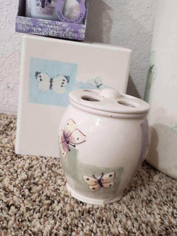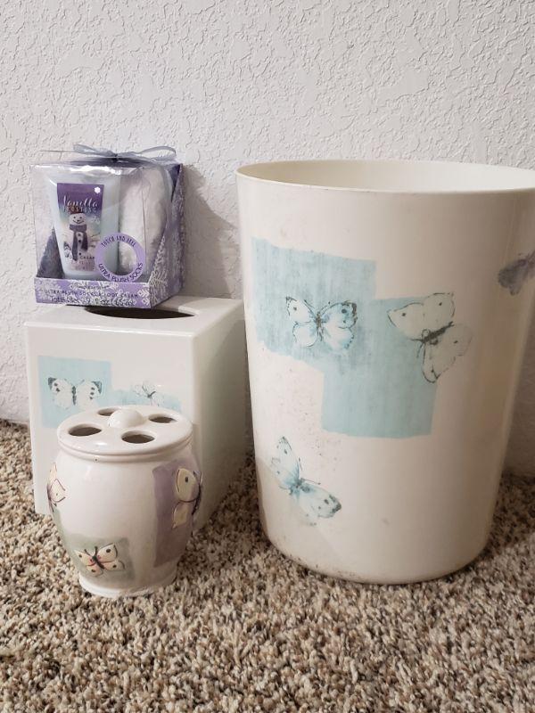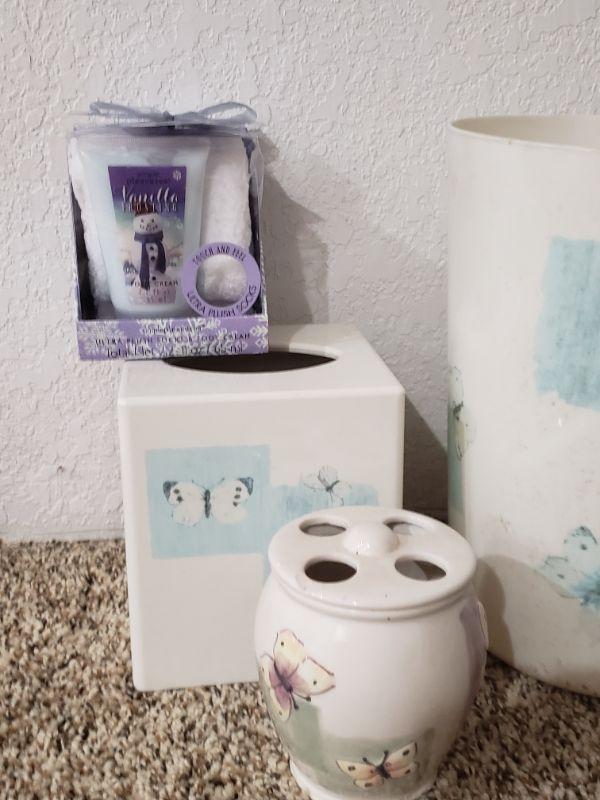 Lot 291: Butterfly Bathroom Set & Unopened Lotion/Sock Gift Set