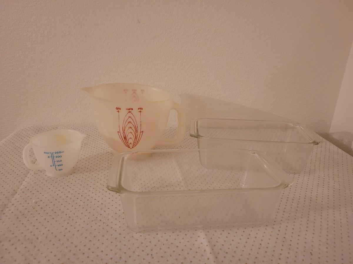 Lot 291: (2) Glass Pyrex Dishes and Measuring Cups