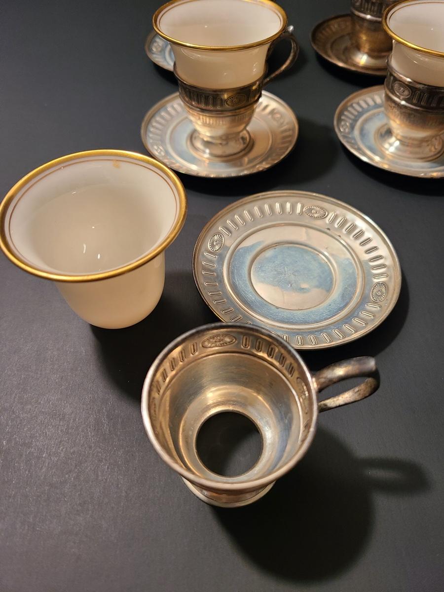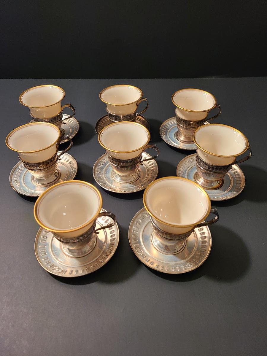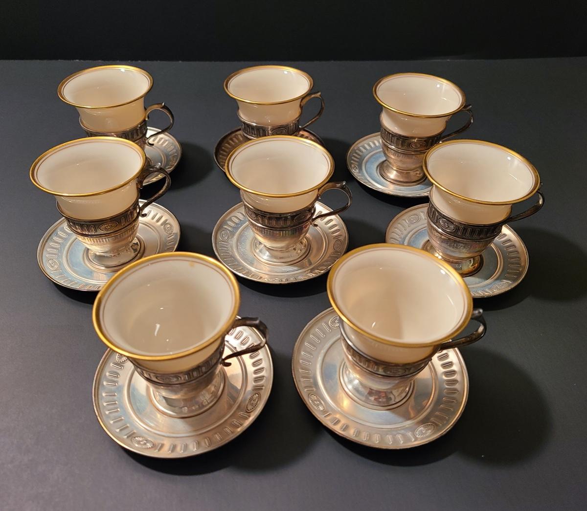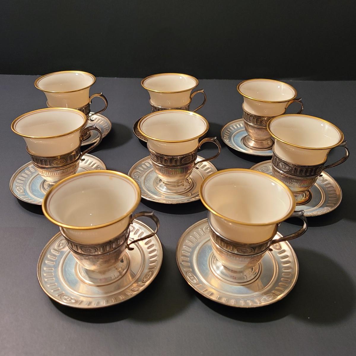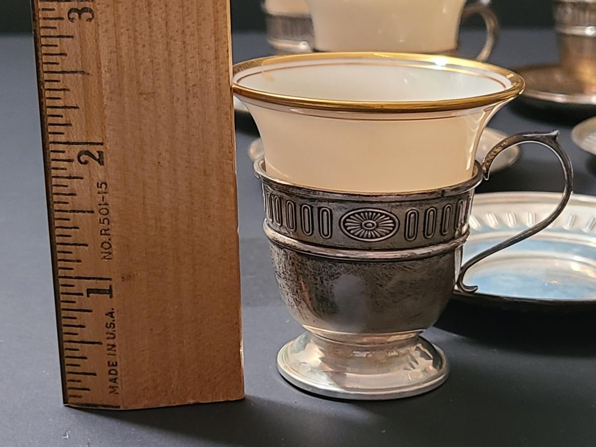 Lot 291: Sterling Demitasse Saucers/Holders with Lenox Porcelain Cups (312 grams)