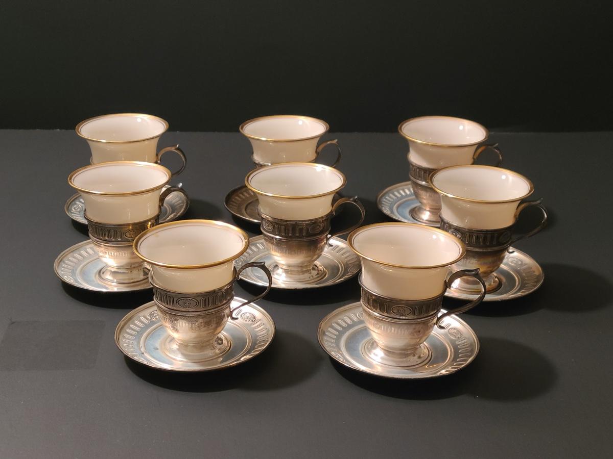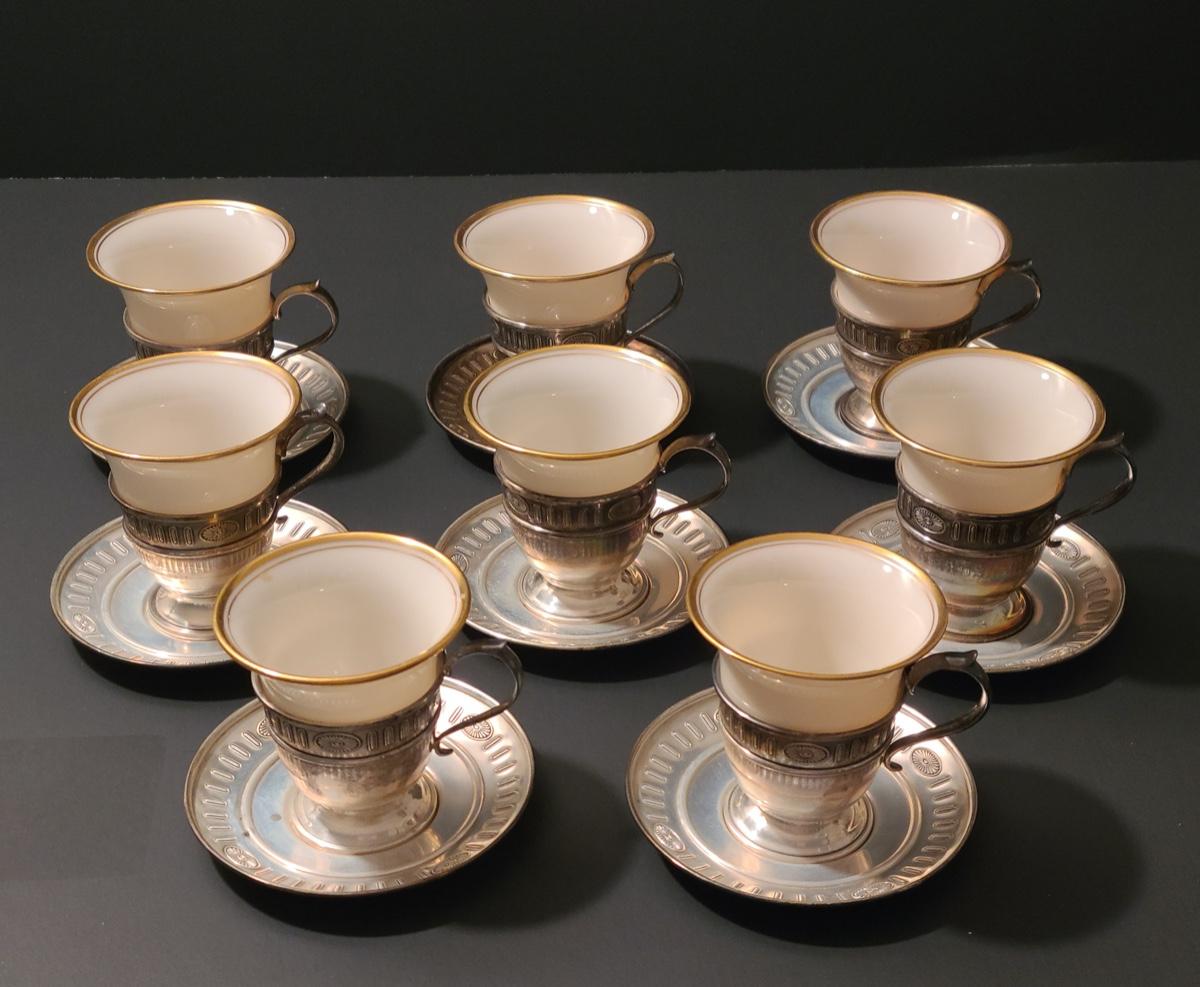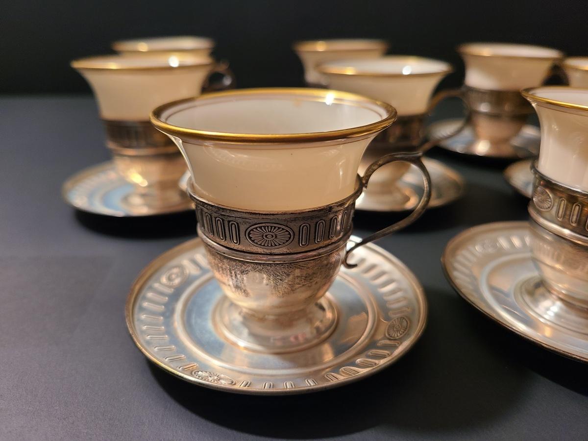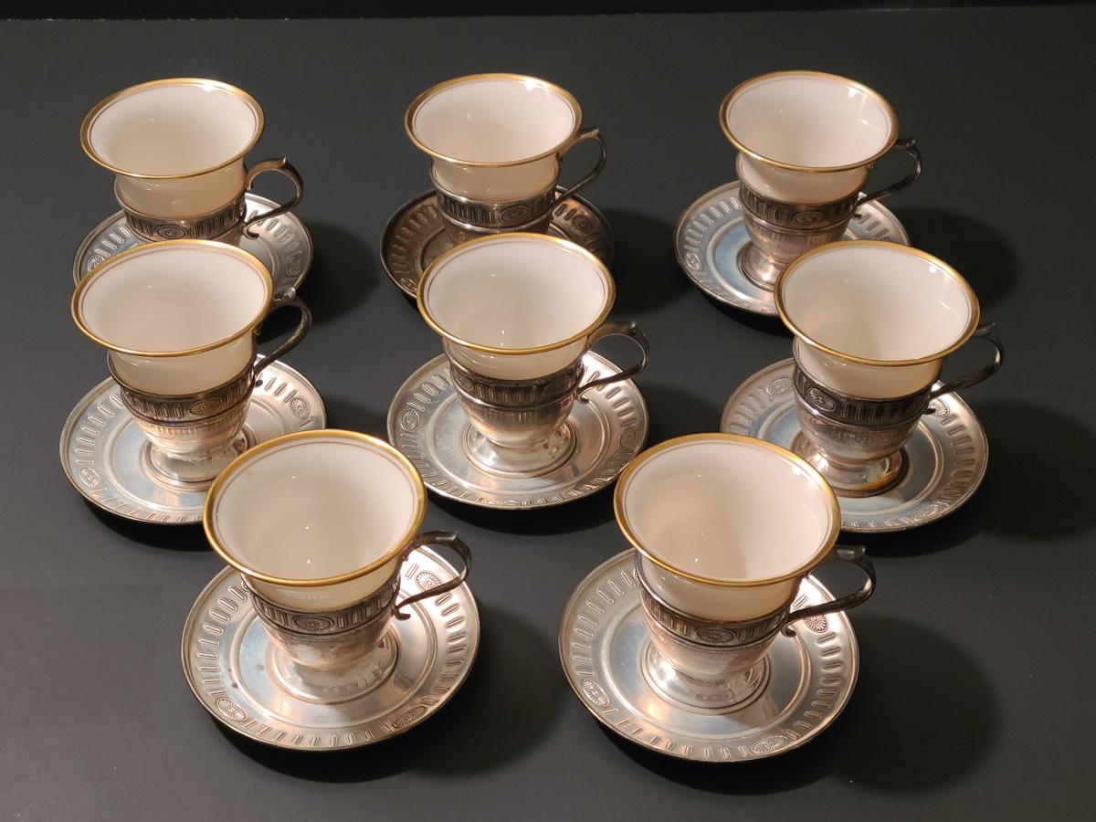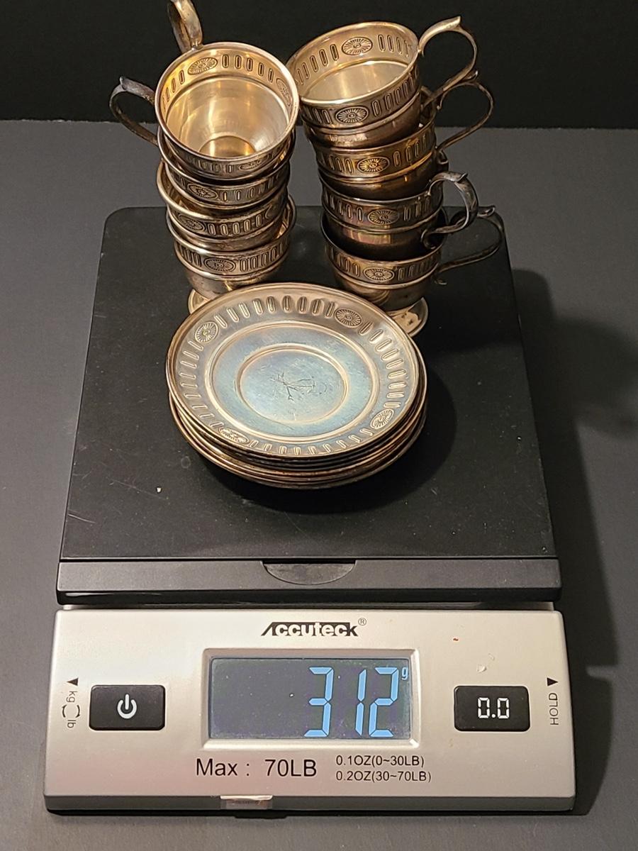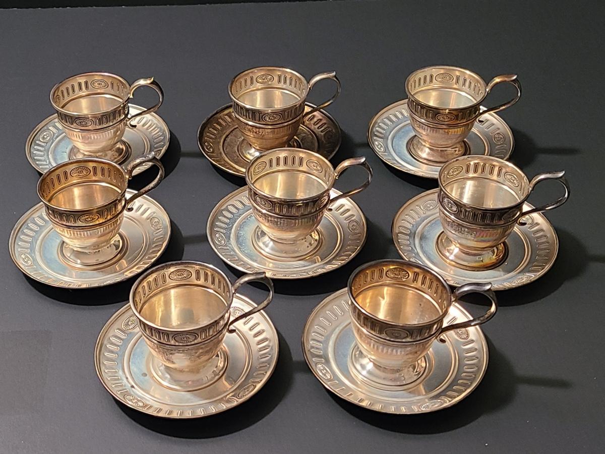 Lot 291: Sterling Demitasse Saucers/Holders with Lenox Porcelain Cups (312 grams)