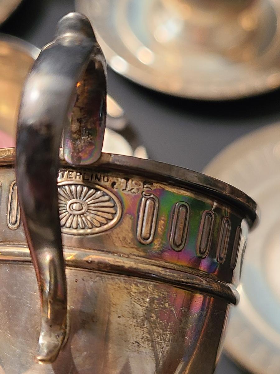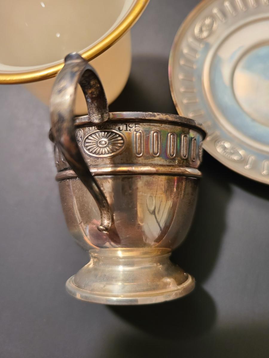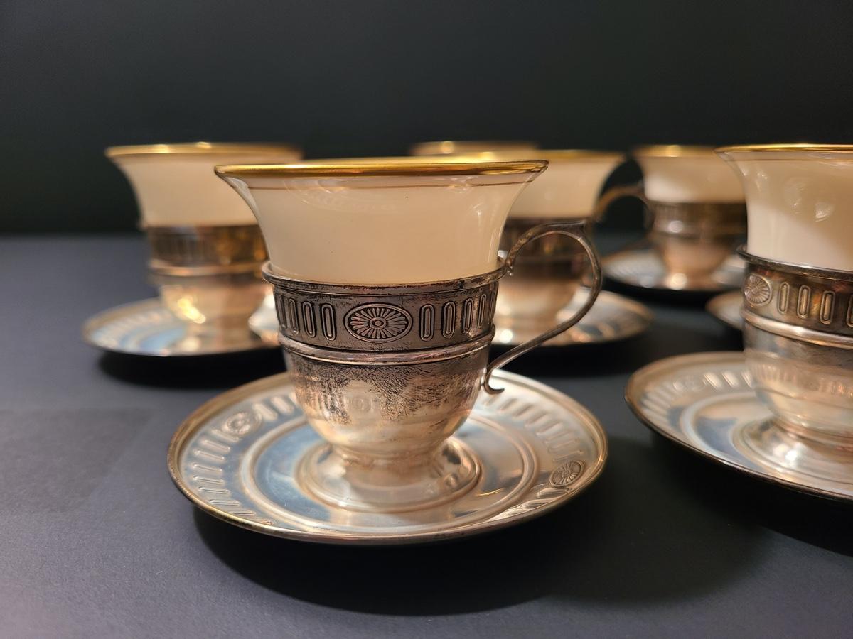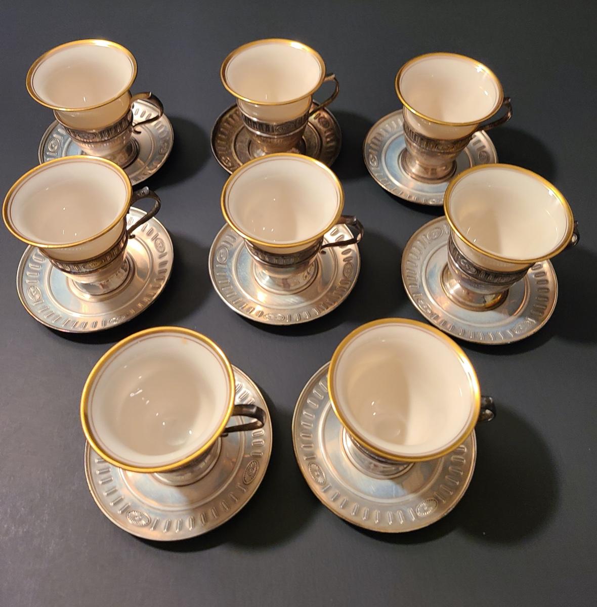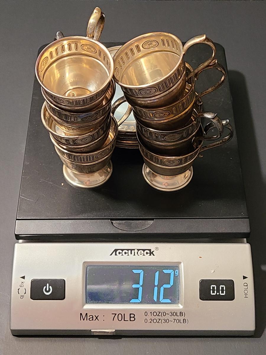 Lot 291: Sterling Demitasse Saucers/Holders with Lenox Porcelain Cups (312 grams)