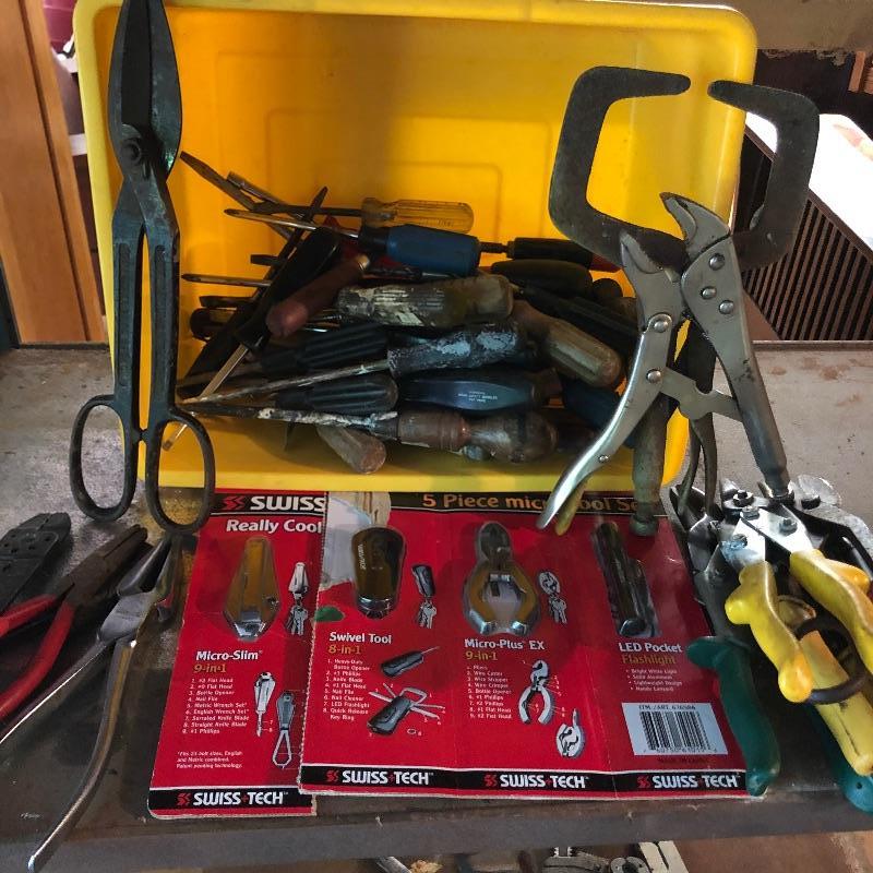 Great assortment of pipe wrenches, vise grip style tools, vintage shears, screwdrivers, pliers and more! Lot also features a brand new 5 piece micro-tool set. See images for entire lot inventory.