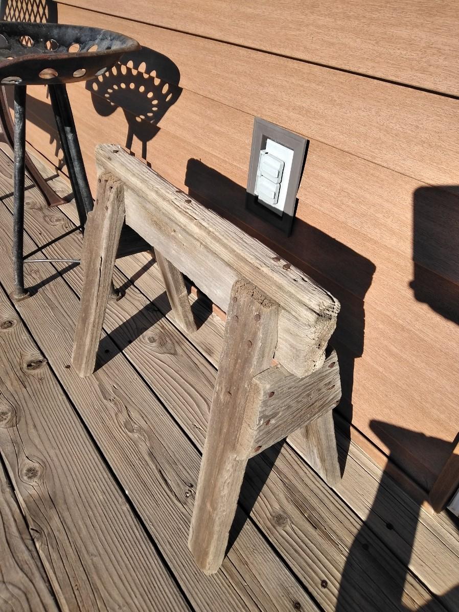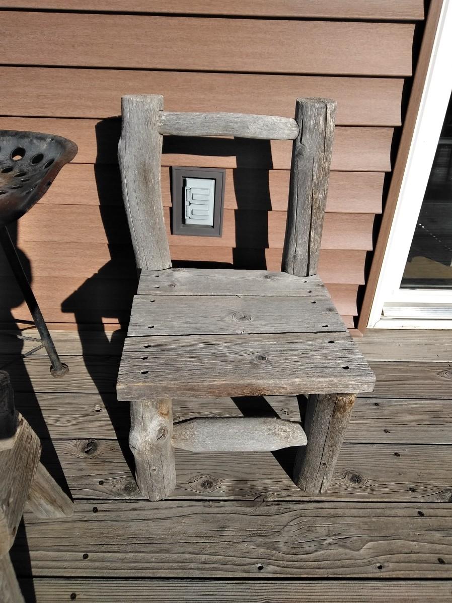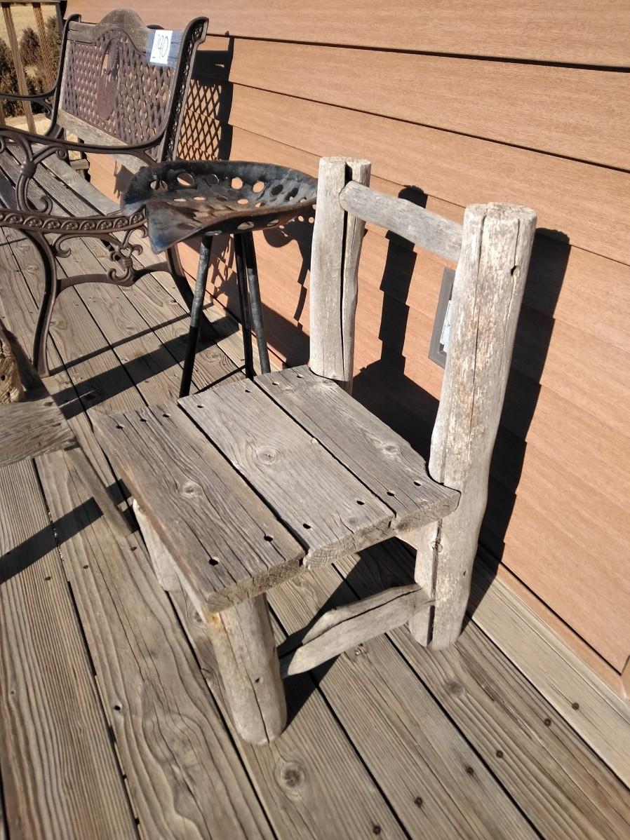 SMALL RUSTIC WOOD CHAIR, CHILD'S SIZED, AND MINIATURE SAW HORSE
