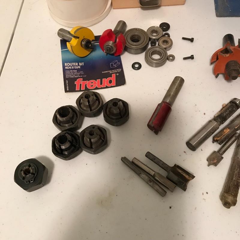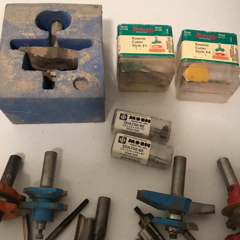 Nice selection of router bits to include names like Grizzly, Moon, Freud and more. Local pick up only.