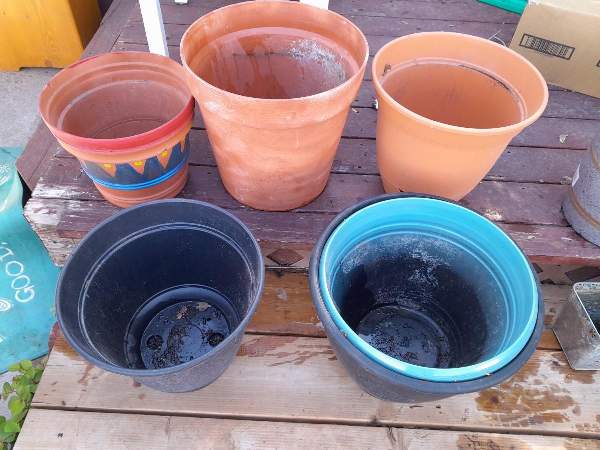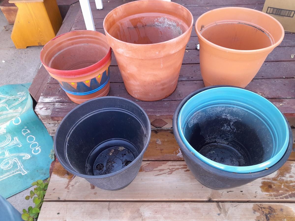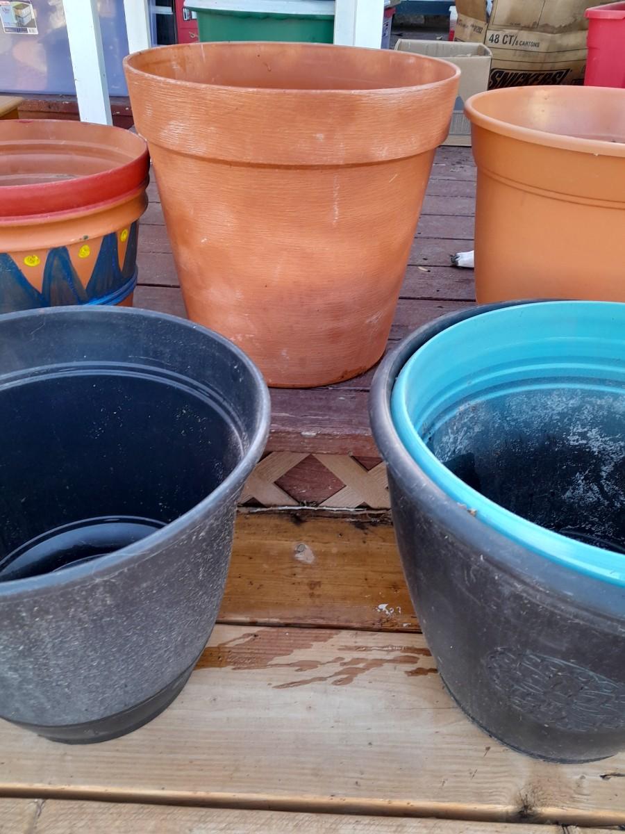 TERRA COTTA AND PLASTIC GARDEN / PLANT POTS