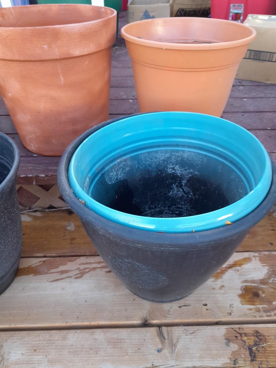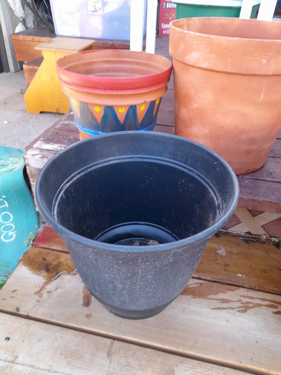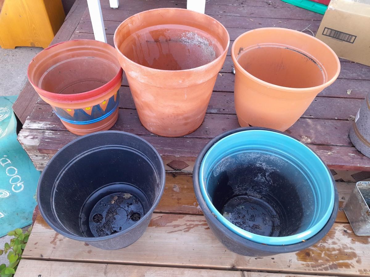 TERRA COTTA AND PLASTIC GARDEN / PLANT POTS