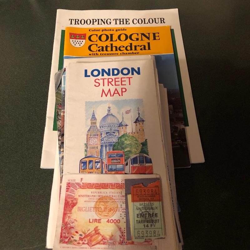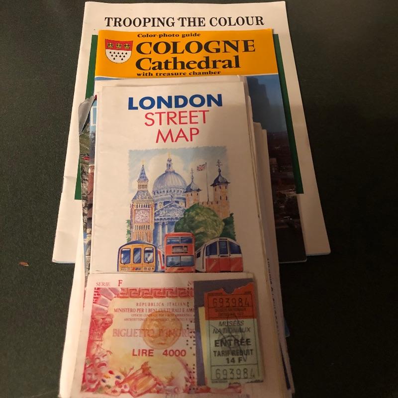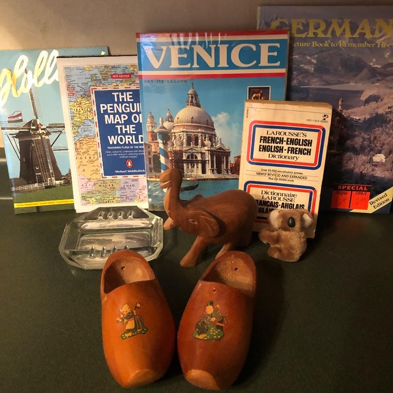 Extremely cool assortment of books, maps, travel pillow, earplugs, postcards and other memorabilia. Even includes a cute pair of Danish shoes. See photos for details. Shipping available.