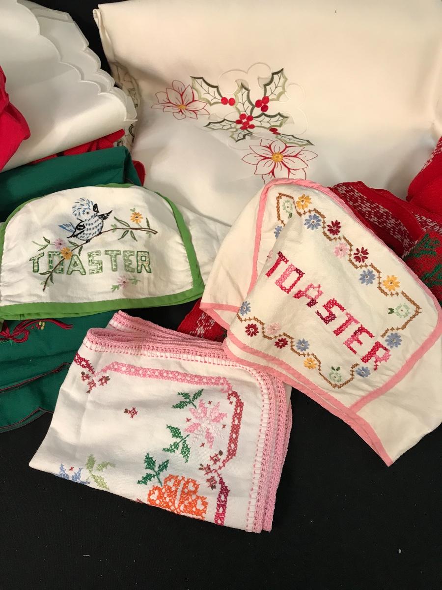 Vintage Linens - Christmas & More. Please see all pictures as they are the best representation of the items. The pictures show condition, measurements if taken, and what is included in the lot. Due to the large amount that we photograph and the time frame, we are not always able to take measurements. All items unless noted, are pre-owned and have been used. If you purchased furniture, you must bring help. We do not allow one person to carry large furniture out on their own. Bring help, tools and a truck for the safety of our client’s homes, and your personal safety. Company policy. Thank you.