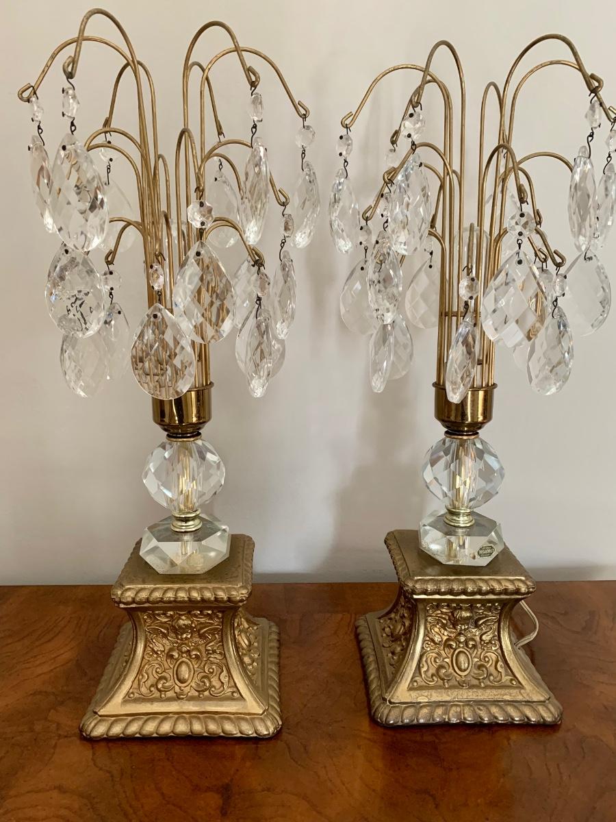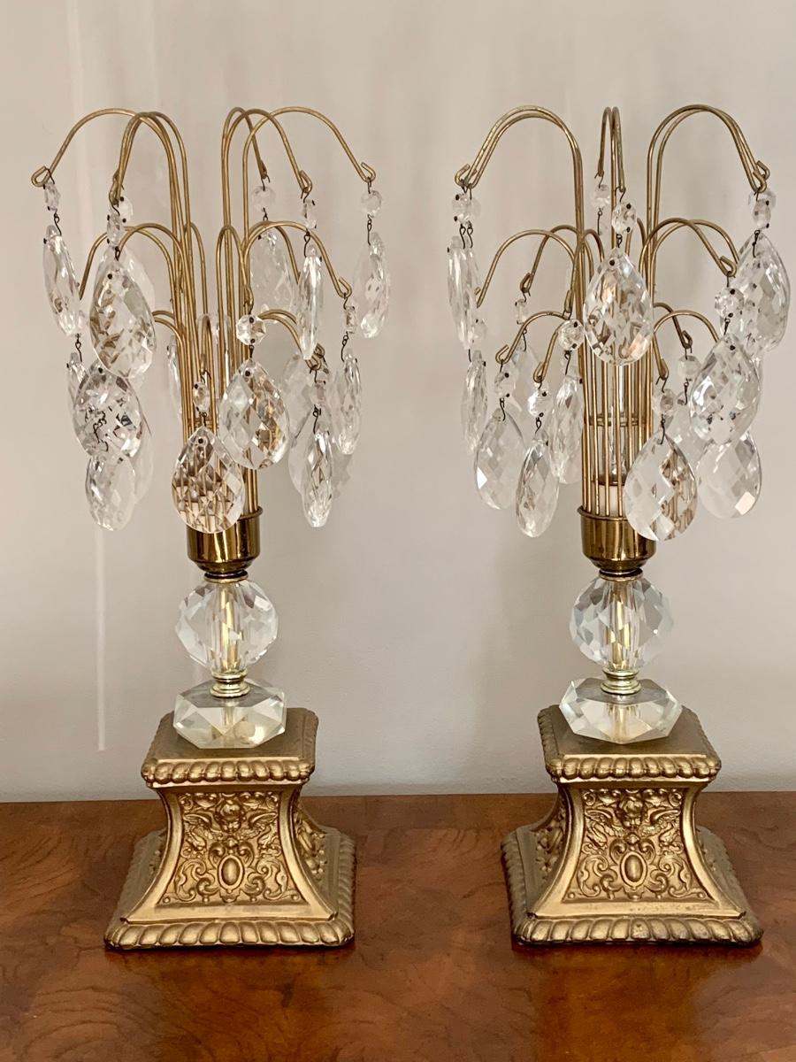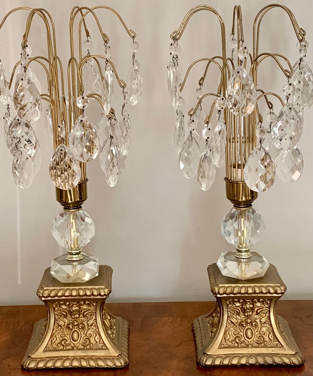 Lot 292: Lead Crystal Hollywood Regency Lamps