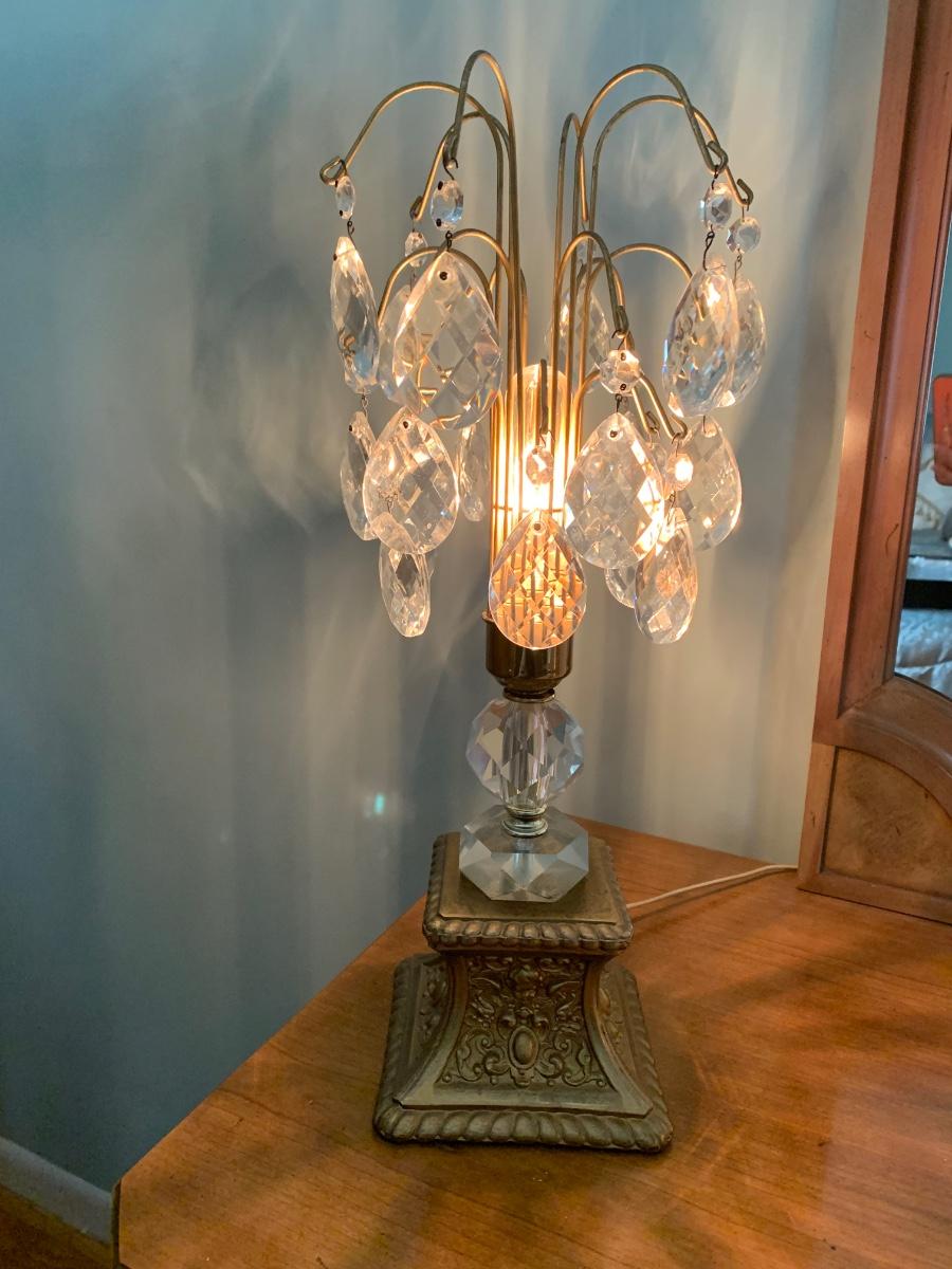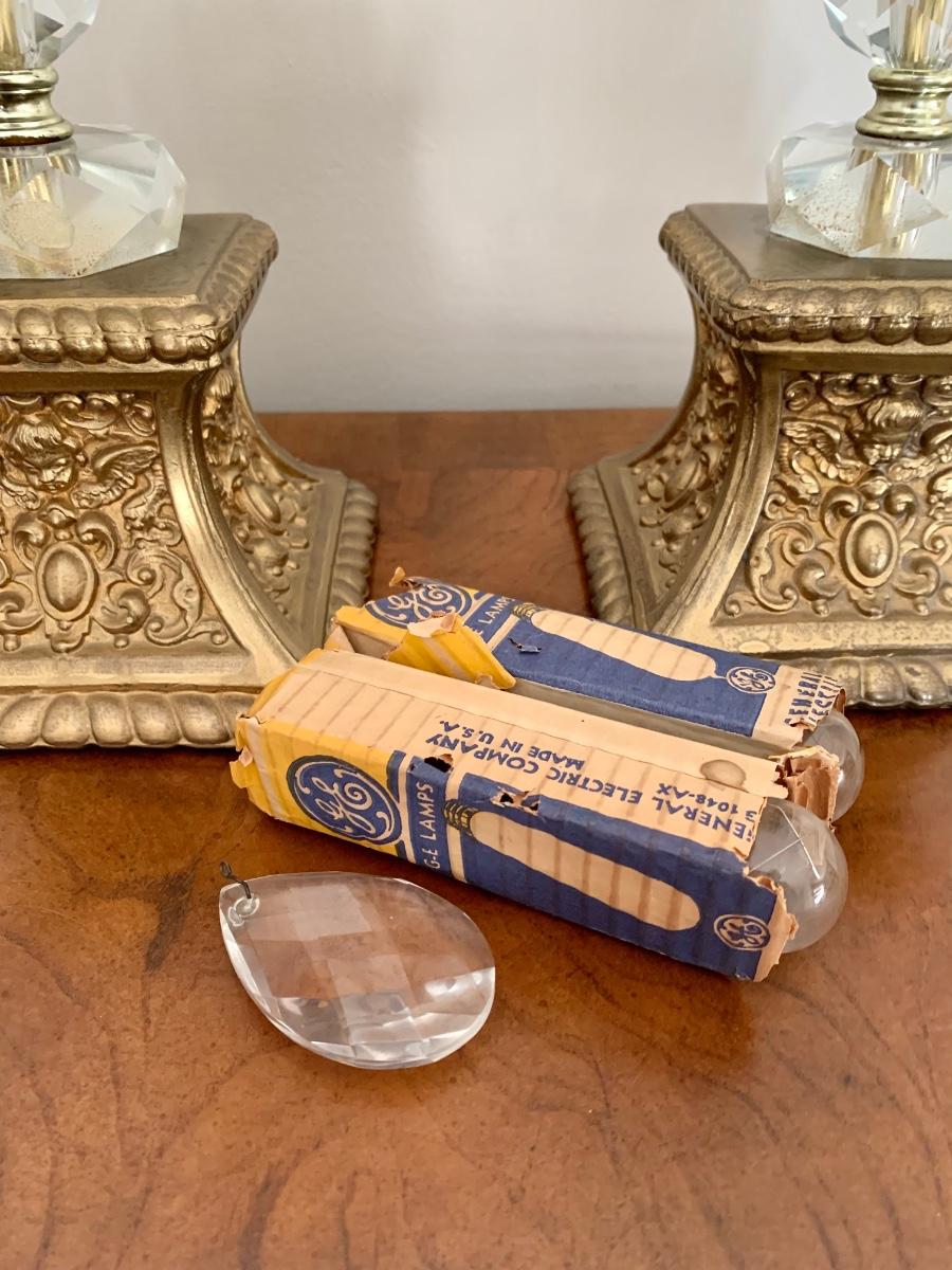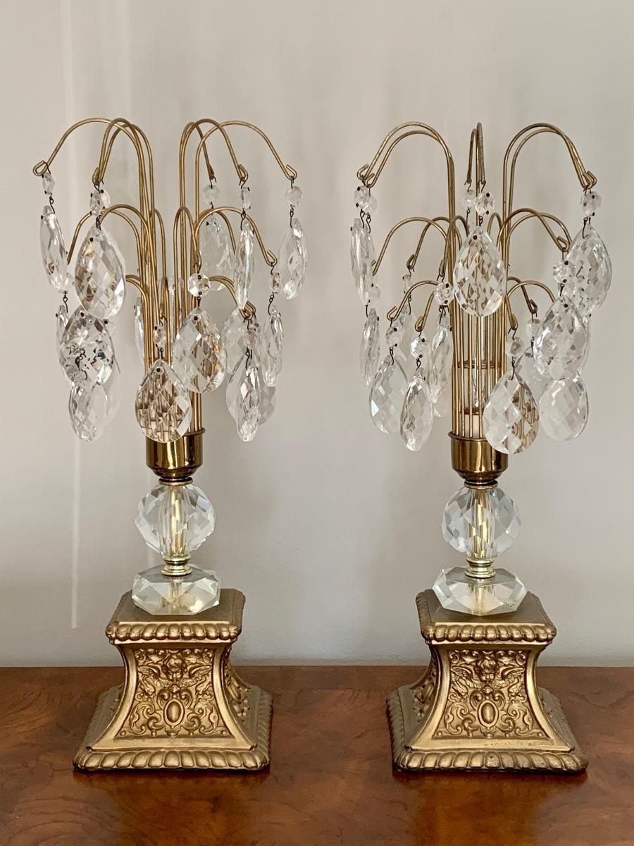 Lot 292: Lead Crystal Hollywood Regency Lamps
