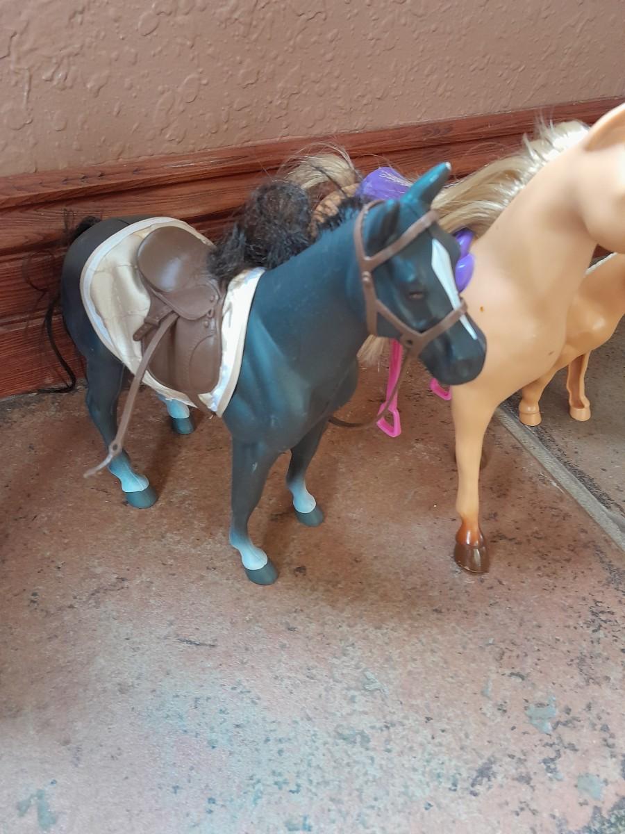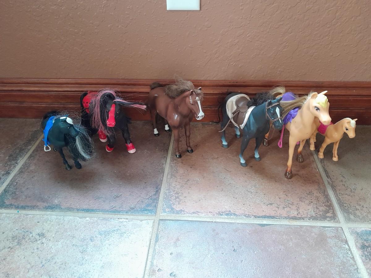 SIX PLASTIC TOY HORSES