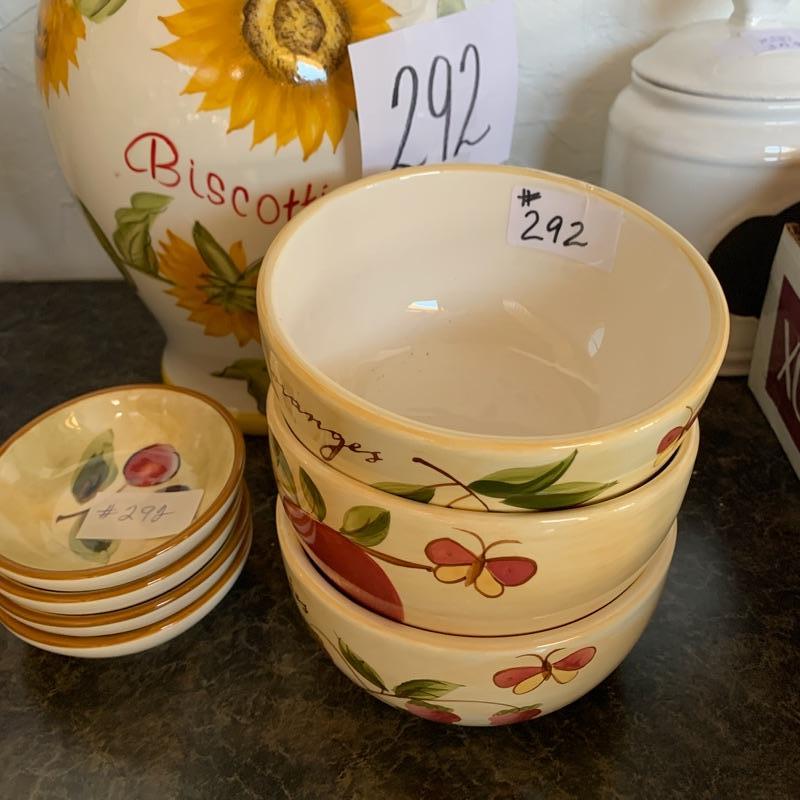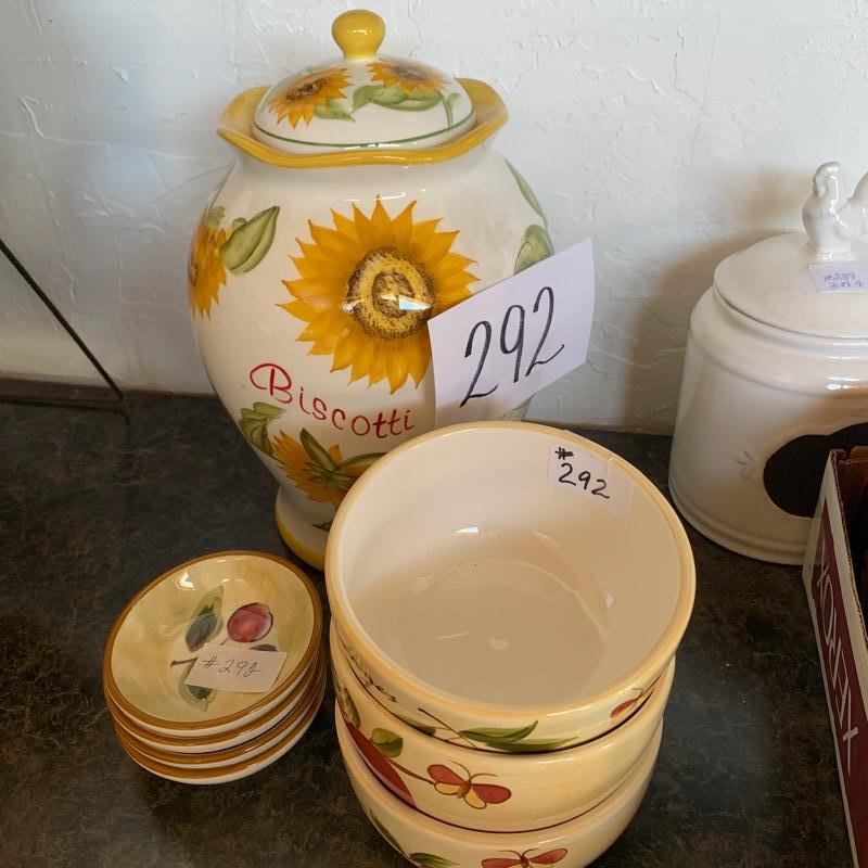 Lot 292 Biscotti jar with 3 bowls and 3 mini plates