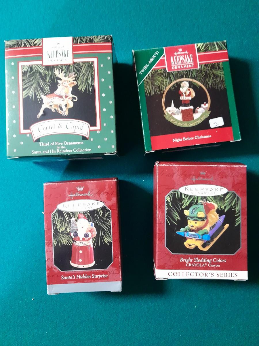 HALLMARK CHRISTMAS ORNAMENTS REINDEER, SANTA, CRAYOLA