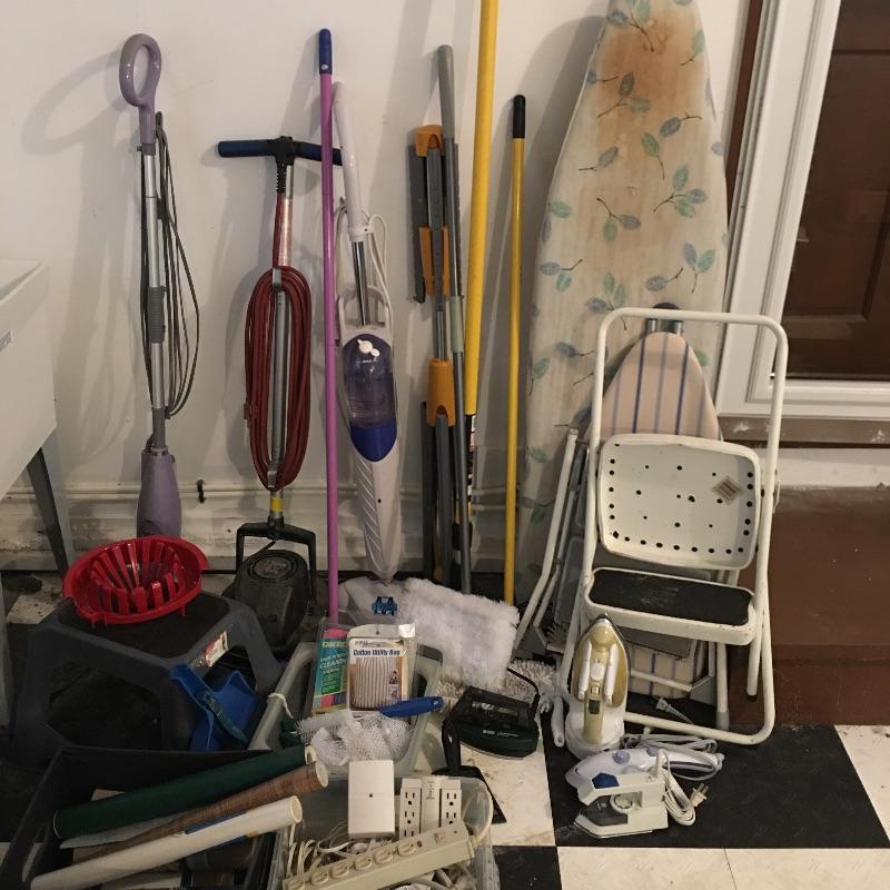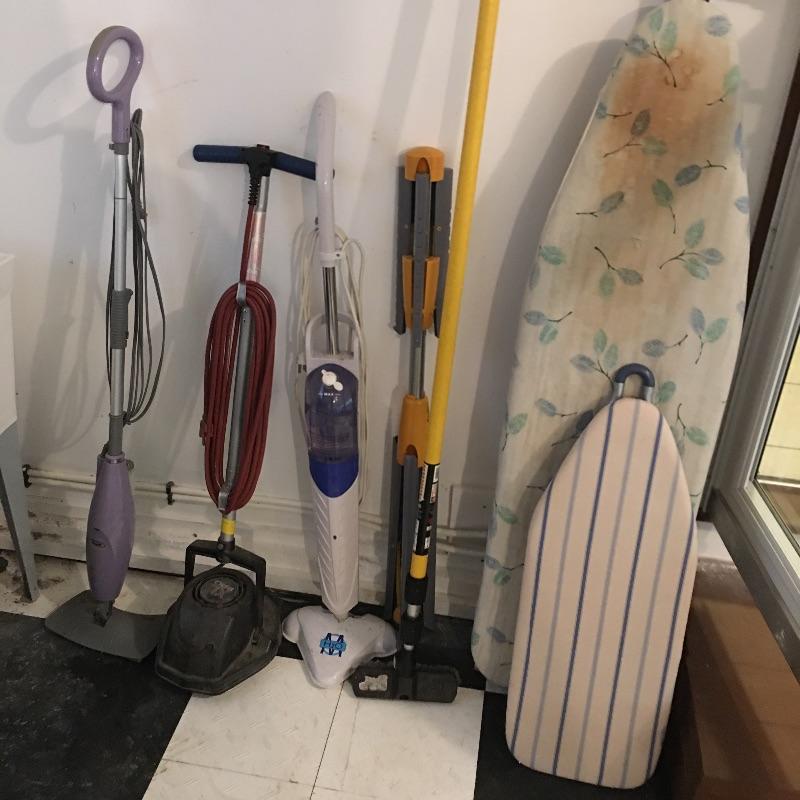 You can spring clean all year long with this collection of household essentials that includes Shark mop, XL pro floor polisher, brooms, mops, clothes hanger, step stools, dust pans, extension cords, drawer liners and more.
