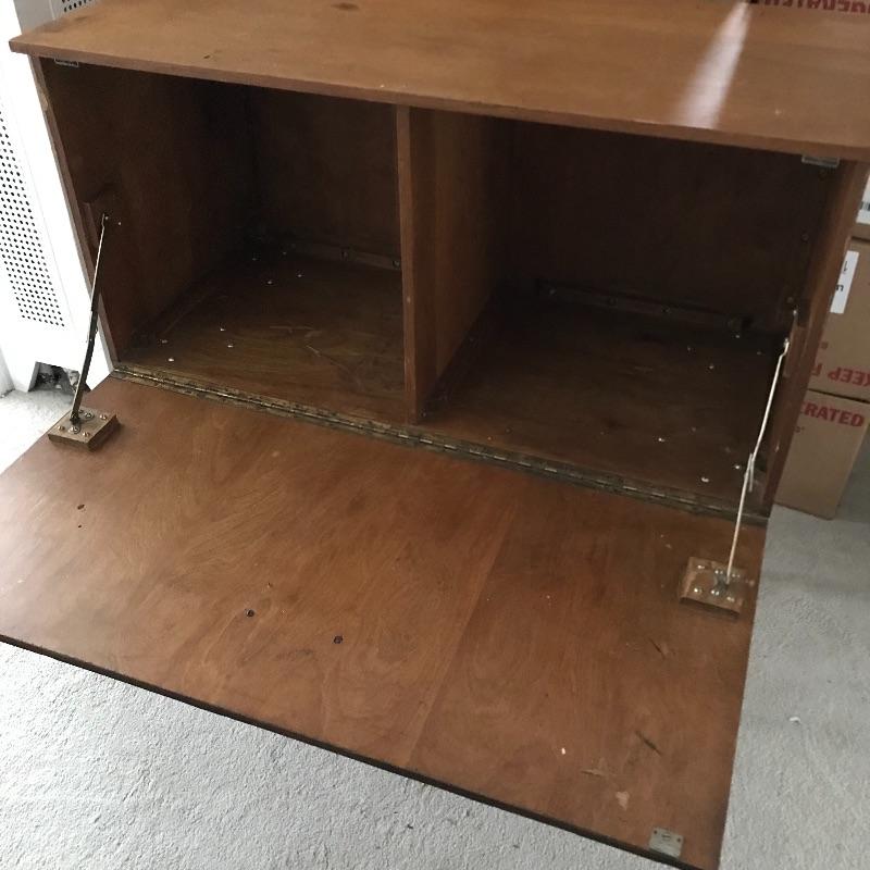 This beautiful MCM piece would be perfect extra storage for your living area or bedroom. Wood is in good shape, though it would look even better if refinished. Unique pulls give this piece a lot of character. Approx. 34.5” x 16.5” x 33.5” h. Local pickup only.