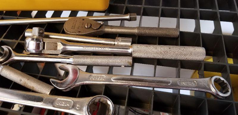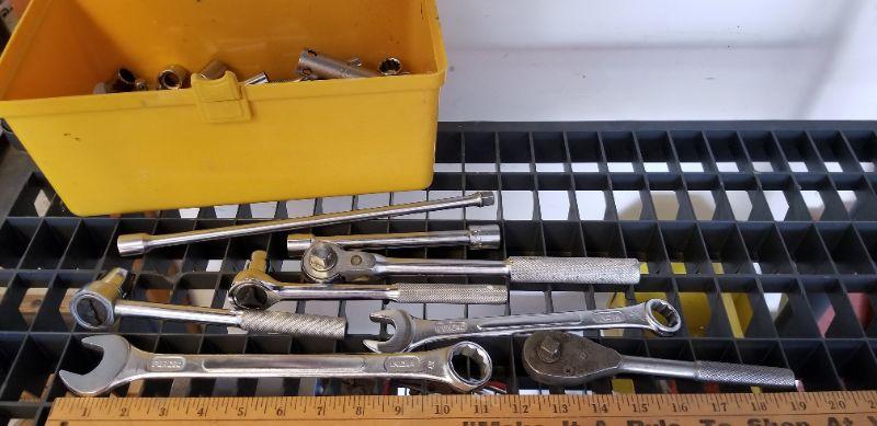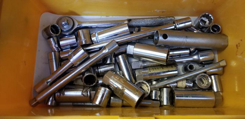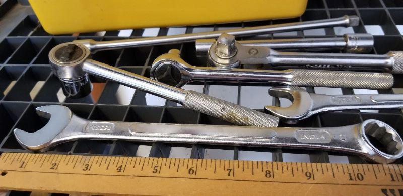 LOT #293: Huge Bundle of Wrenches and Sockets w/ Yellow Plastic Case