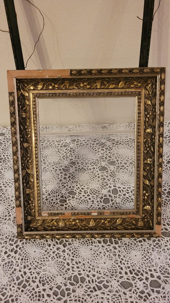 Lot 293: Antique Wood Gold Gilt Picture Frame and Black Decorative Frame