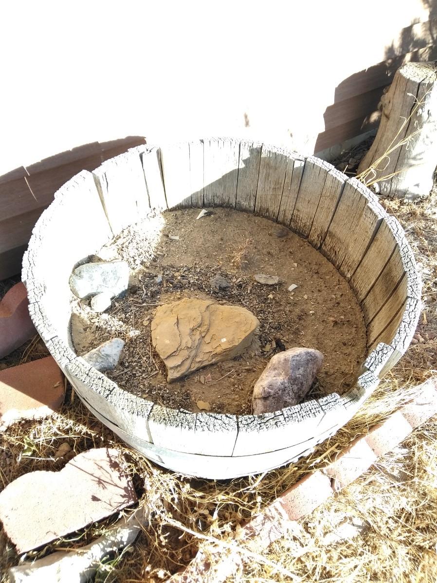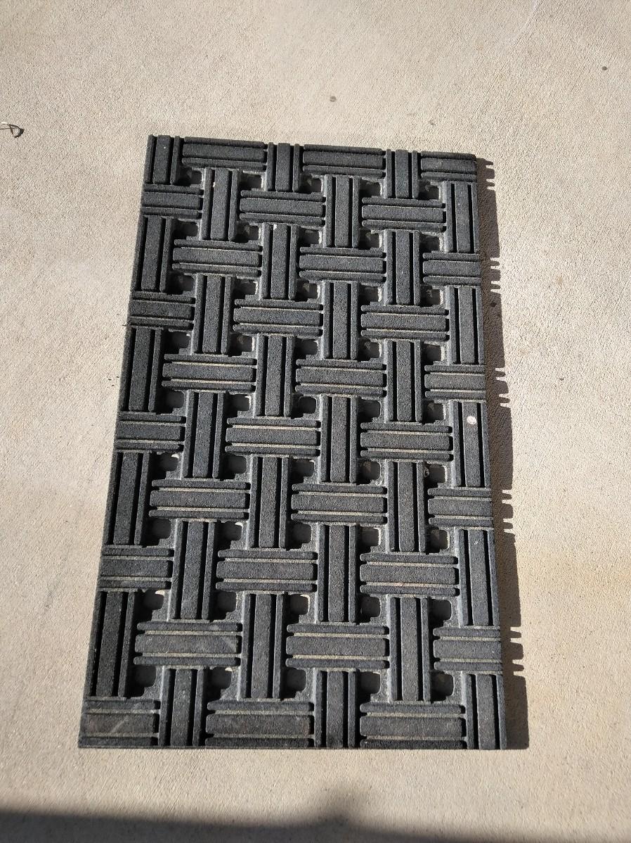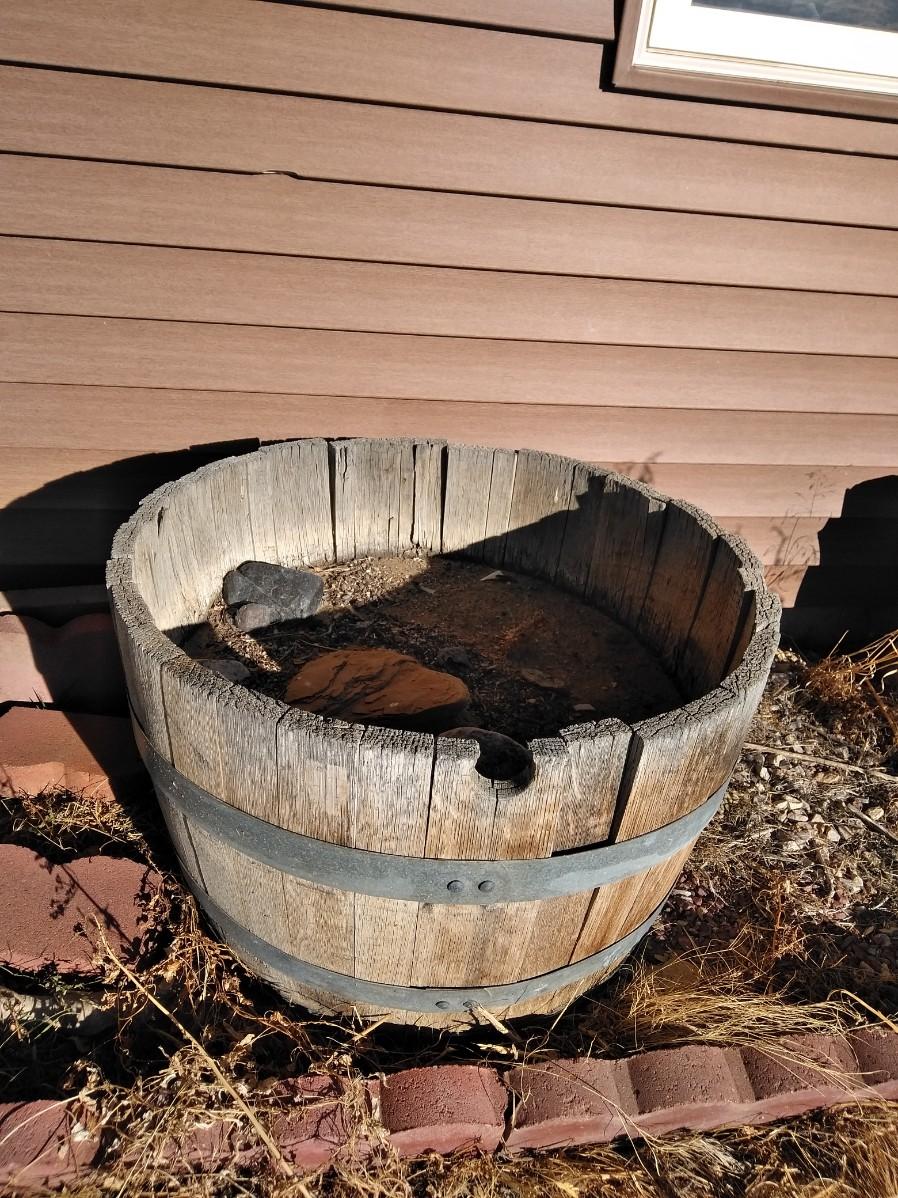 WHISKY BARREL PLANTER AND A NICE RUBBER DOOR MAT