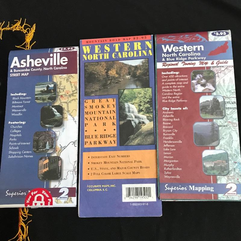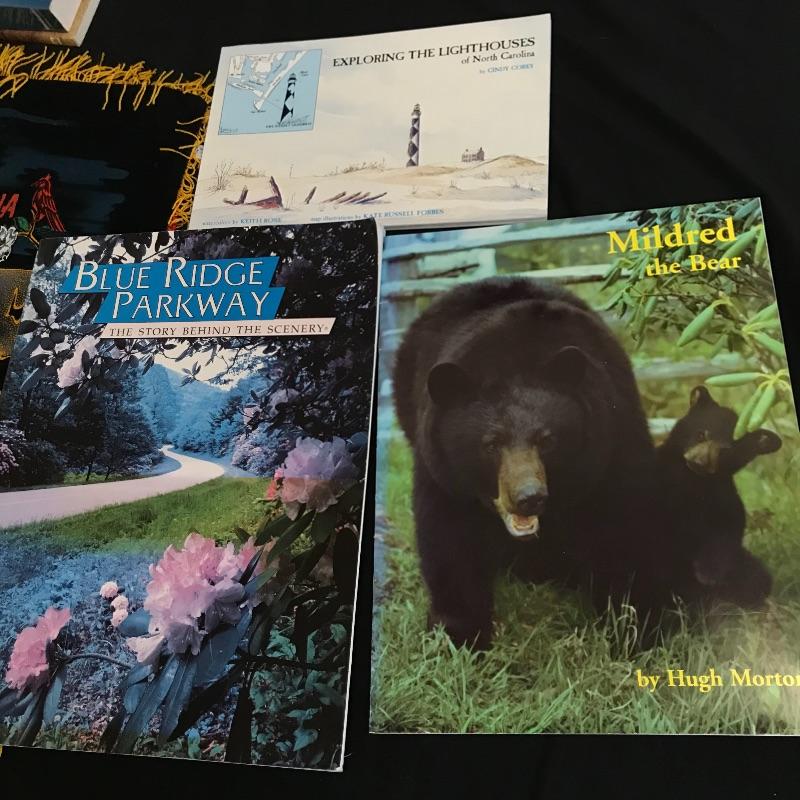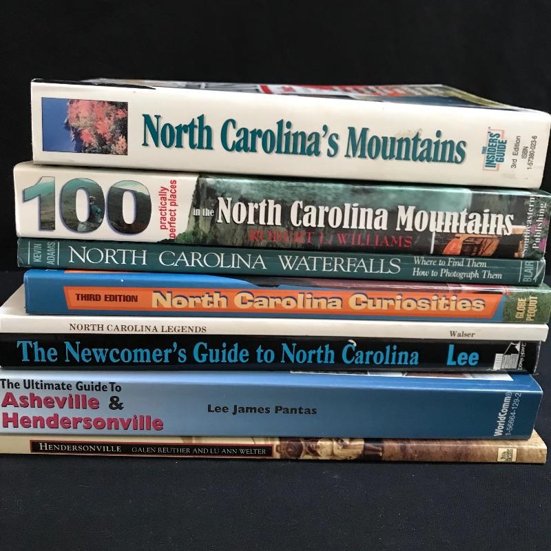 Fun lot to learn where you live or where you want to be! All things NC with highlights of the Blue Ridge Mountains and Western North Carolina. The book collection includes a Newcomer’s Guide to N.C., Hendersonville history, a couple books featuring mountains and waterfalls. Also included are three road maps of WNC, a fantastic banner with more highlights of the great state and ten panoramic card stock prints of the Blue Ridge Parkway! UPS Shipping available.