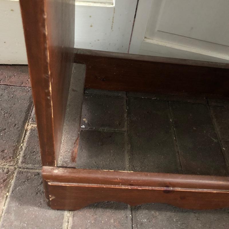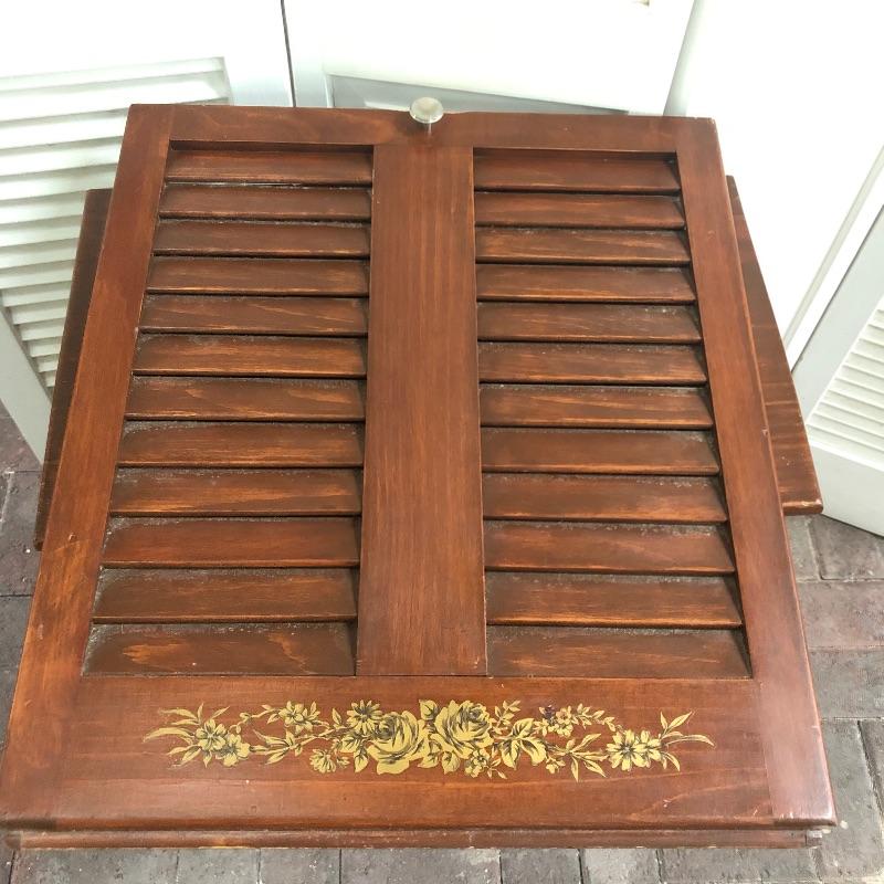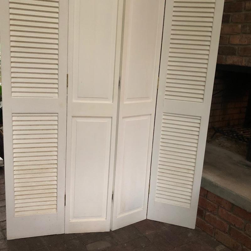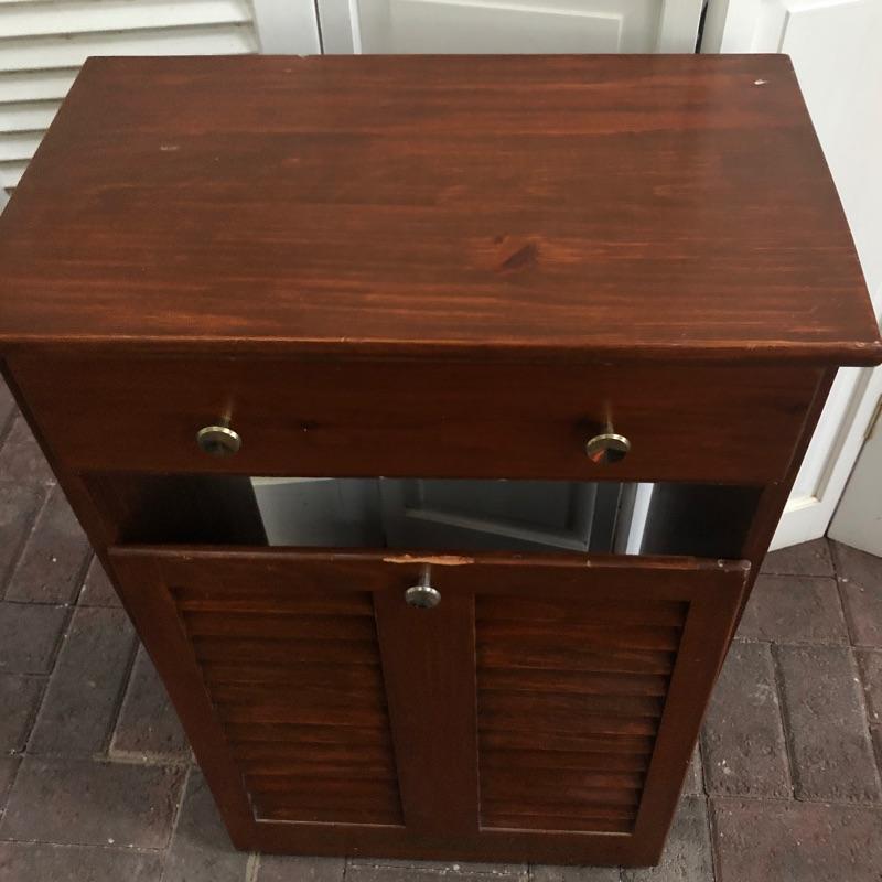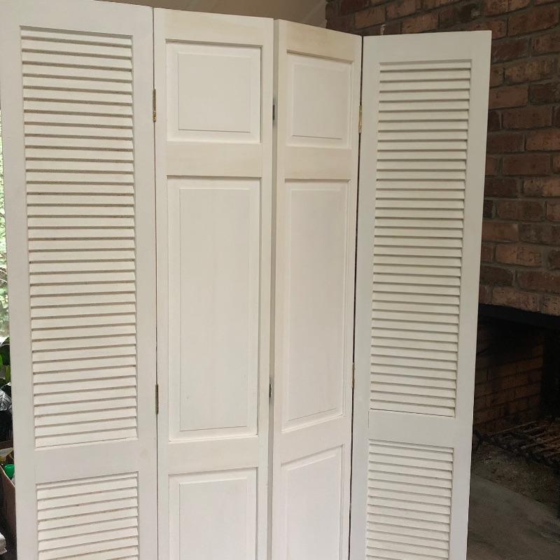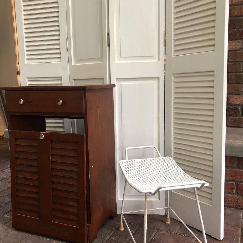 Versatile room divider is a blank canvas. A good cleaning and coat of paint makes all the difference. Keep it neutral on one side and colorful on the other. The possibilities are endless. The hamper cabinet needs a better way to keep the front in in place.- there are some chips see photos.