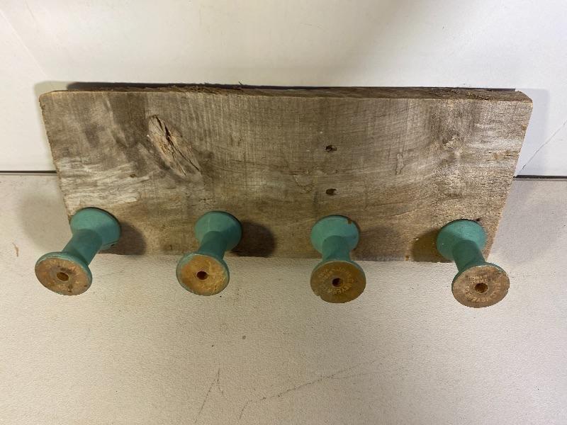 Lot# 293 s Shabby Chic Coat Hat Rack Wood Thread Spool Hooks
