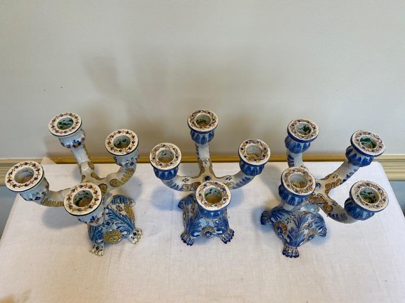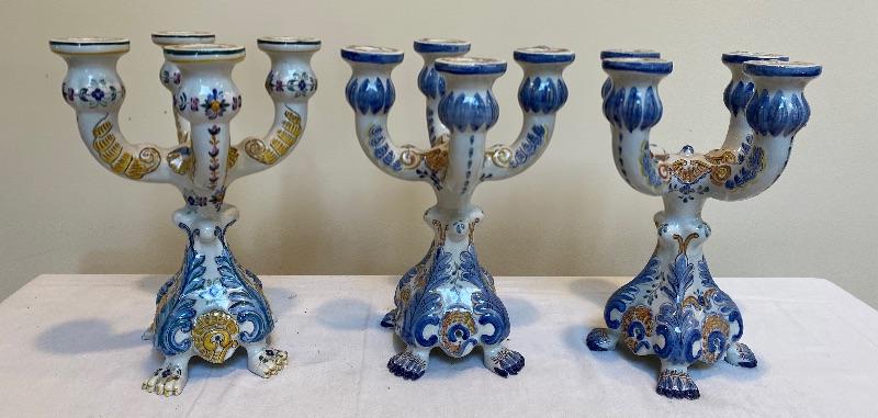 Lot # 293 Set of three hand-painted Portugal candelabra
