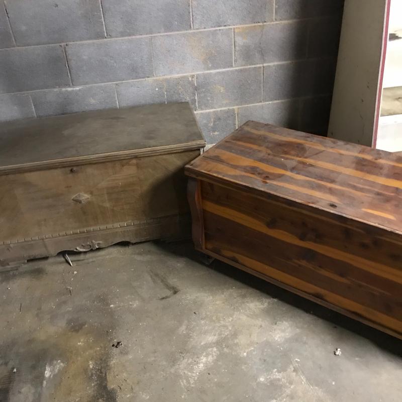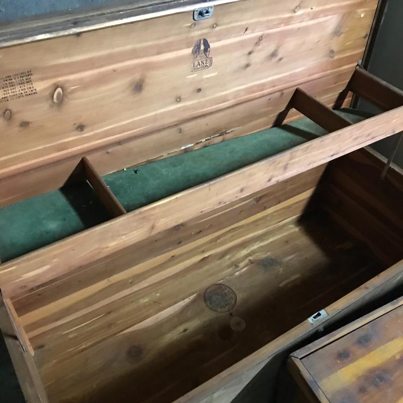 Lot includes two chests, one is Lane and lined with cedar. Both need love. Lane chest is approx. 44” x 19” x 21.5”. See pics. No shipping. Local pickup only in Asheville, NC.