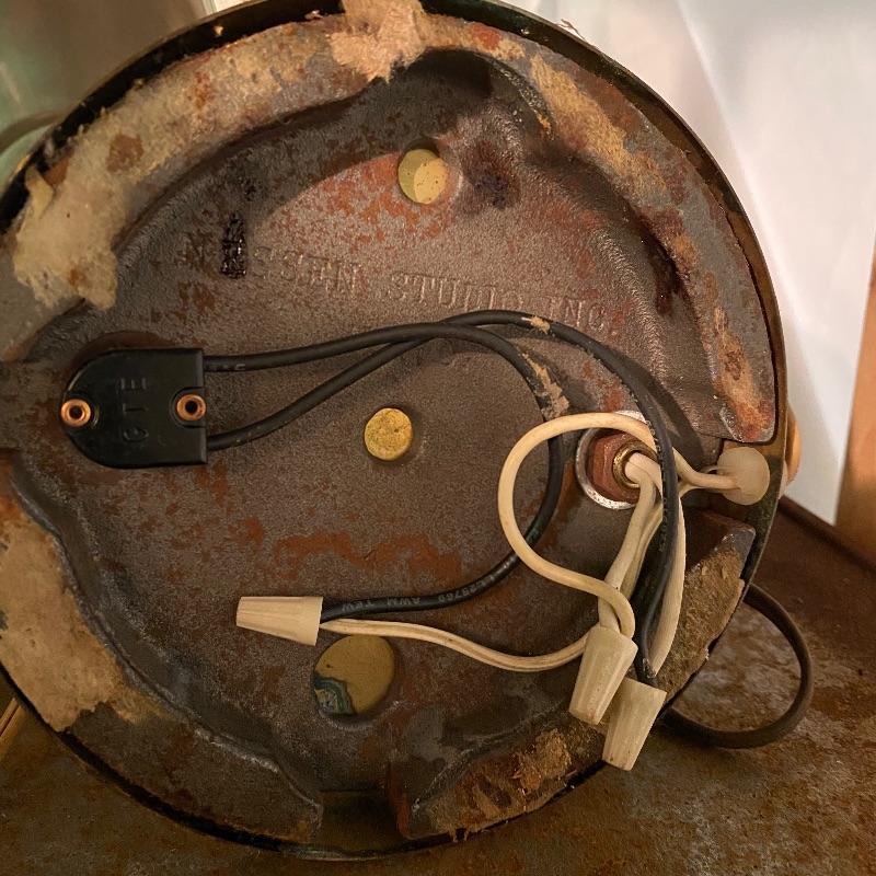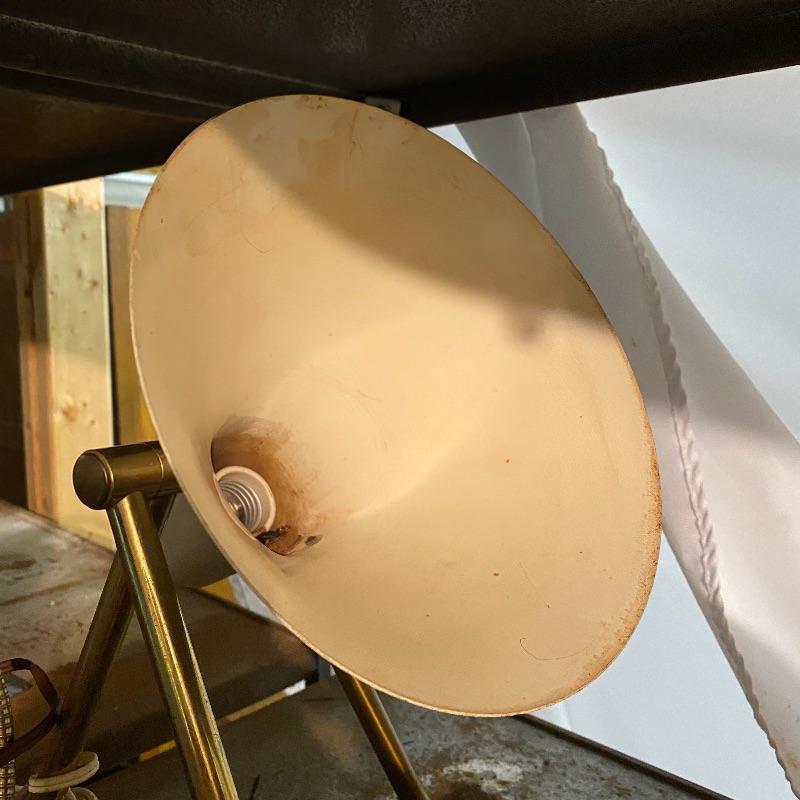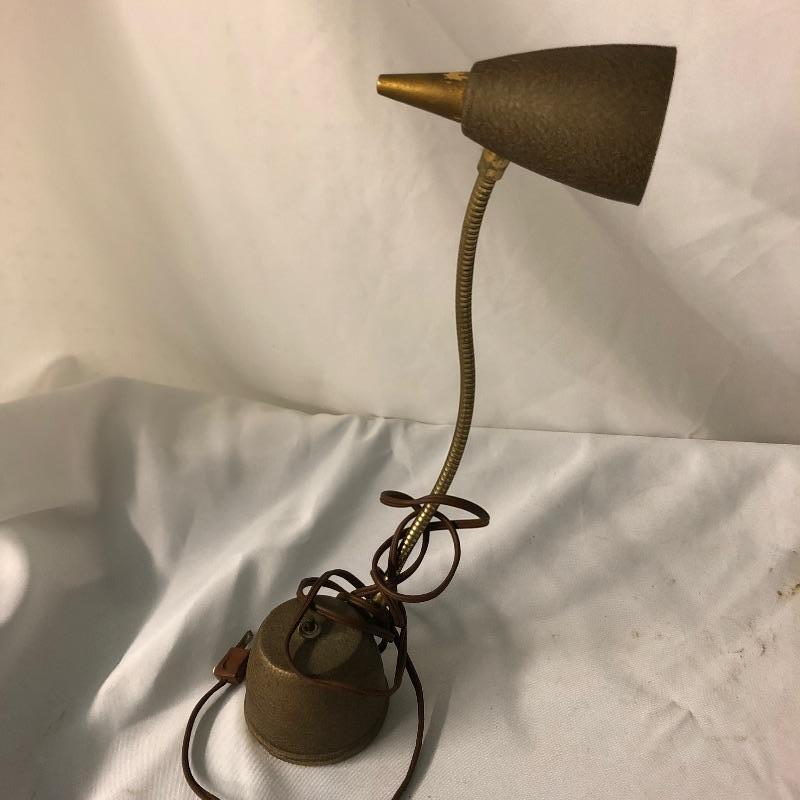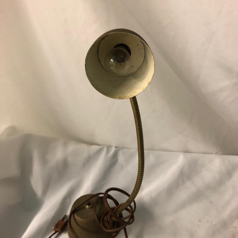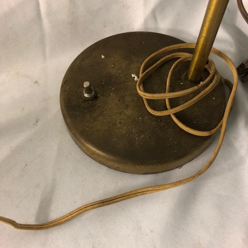 We have a really cool assortment of vintage lights for you here. A total of five lights that includes a brass wall mount light, a small retro desk lamp, a vintage aluminum shop type wall mount light and more. Look closely at our images as the two lamps with white shades do not have plugs wired. All the lights were tested and didn’t work, this could be that they just need new bulbs?