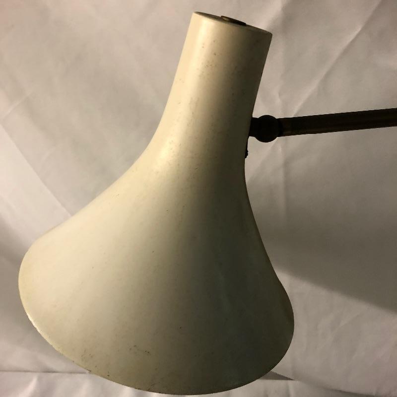 The tallest brass desk lamp with off white shade is by Nessen Studio and measures 18” tall. Shipping available