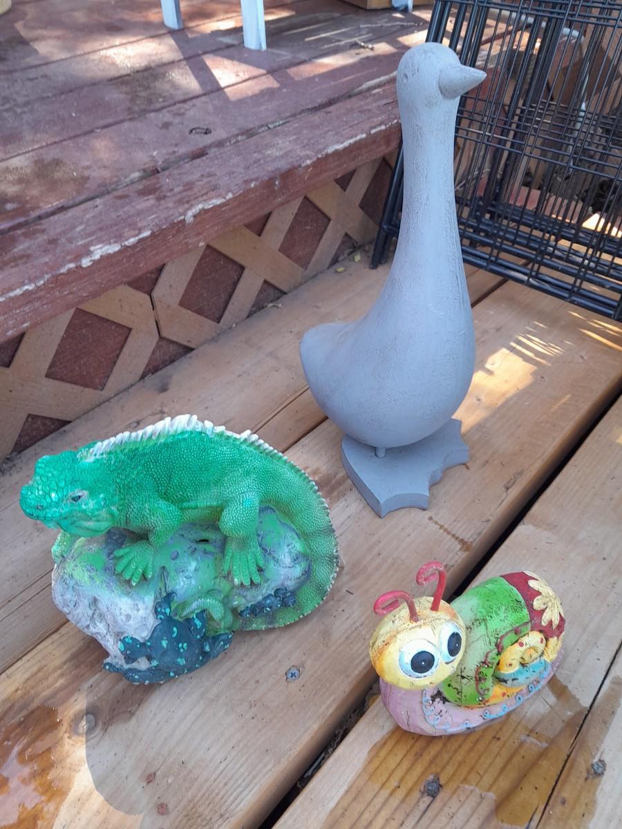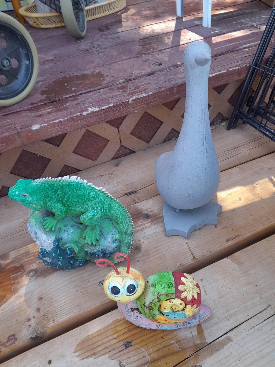 YARD / GARDEN CRITTERS, SNAIL, DUCK AND IGUANA
