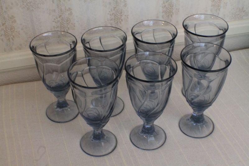 LOT #294: Vintage Blue Drinking Glasses Large (7) Total