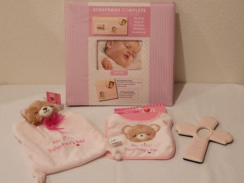 Lot 294: New Baby Girl MY 1st Valentine's Day, Cross & Scrapbook lot
