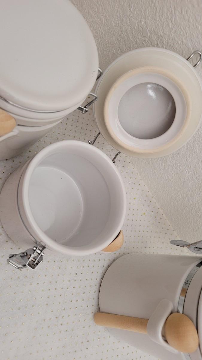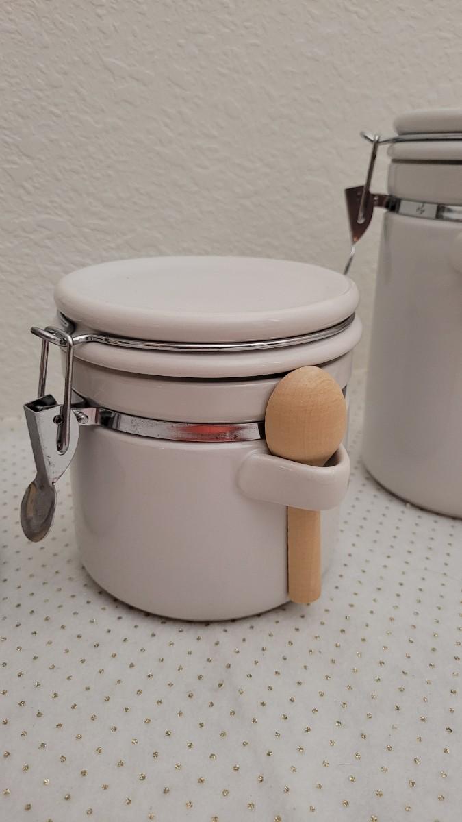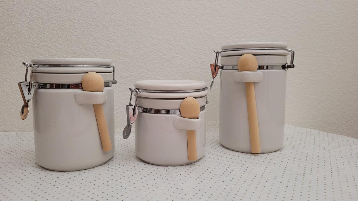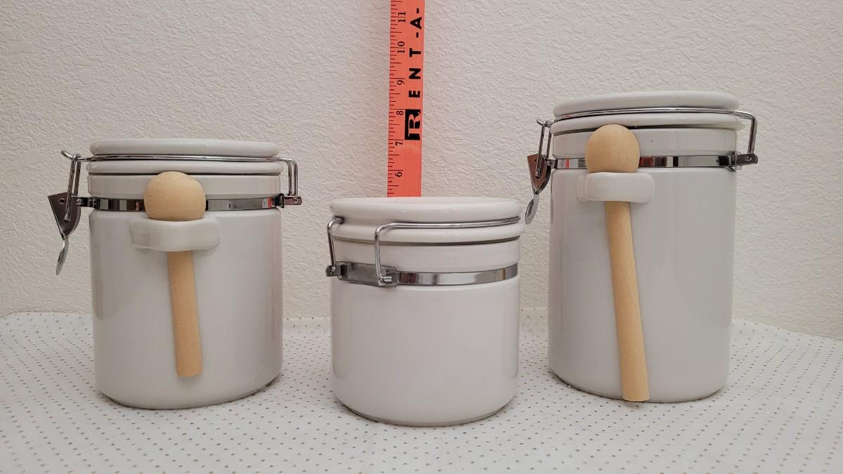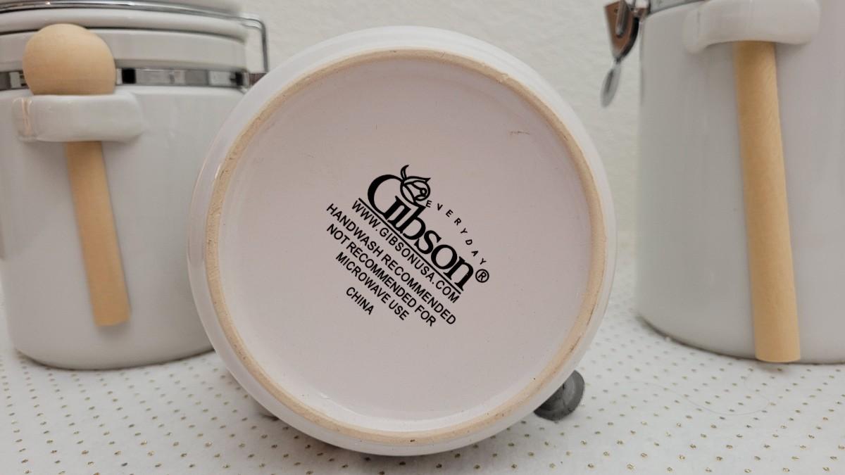 Lot 294: Set of (3) GIBSON Graduated Canisters w/ Spoon Accent