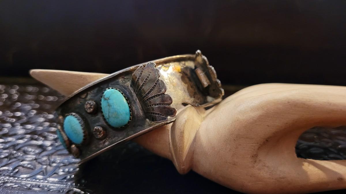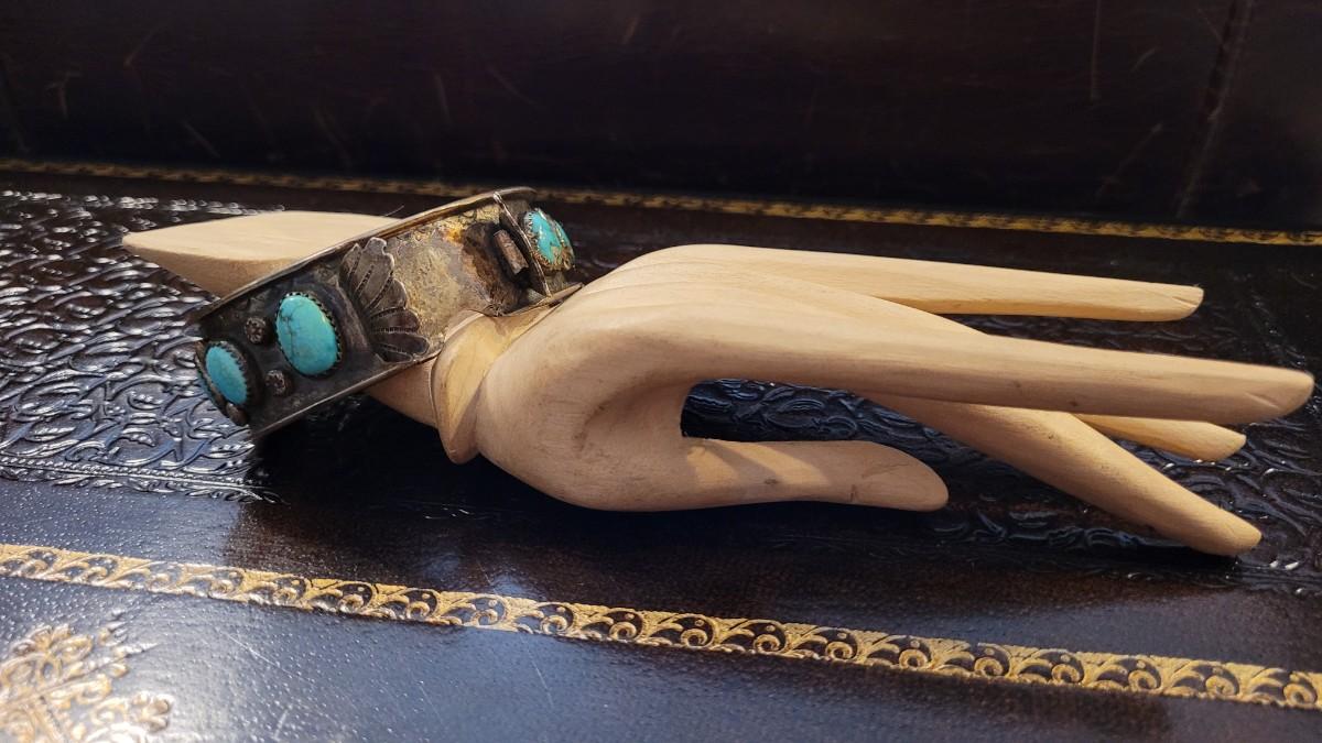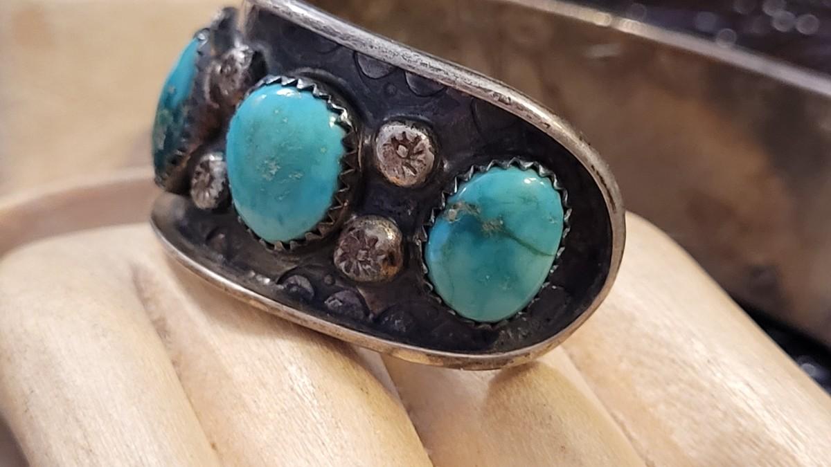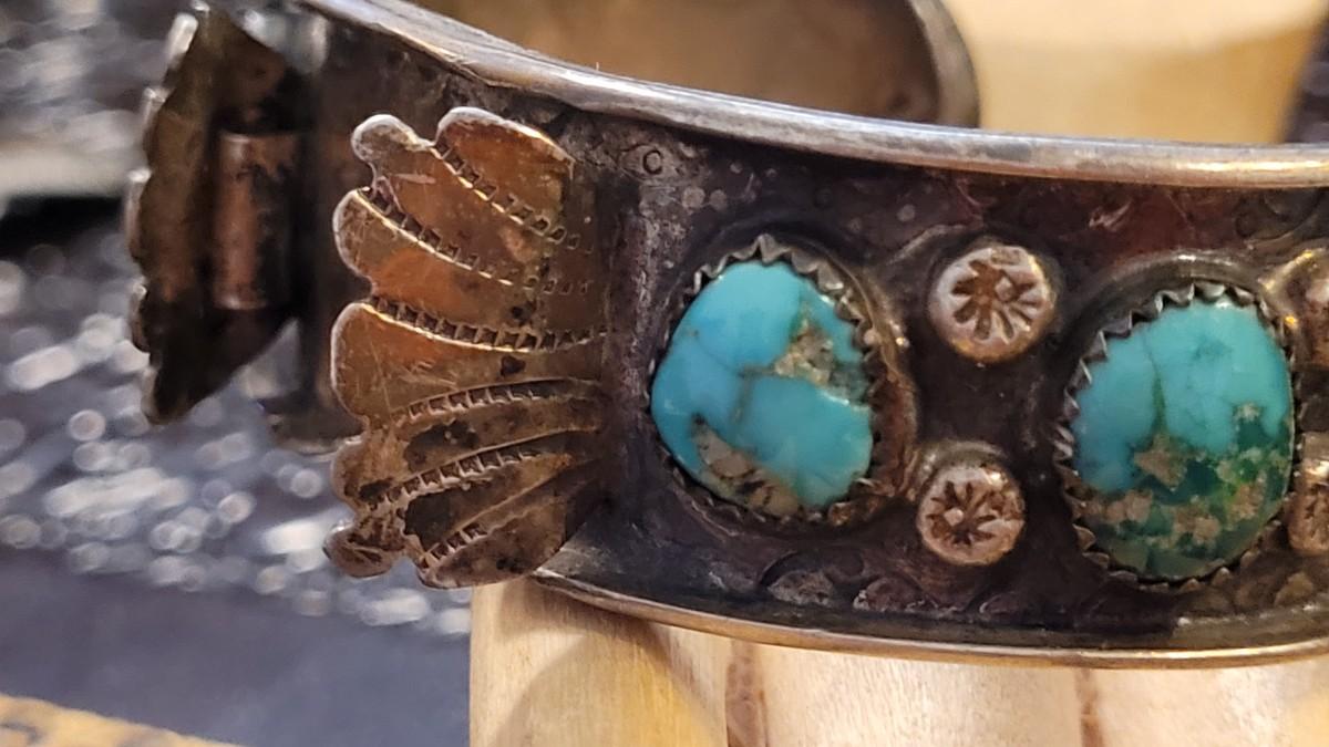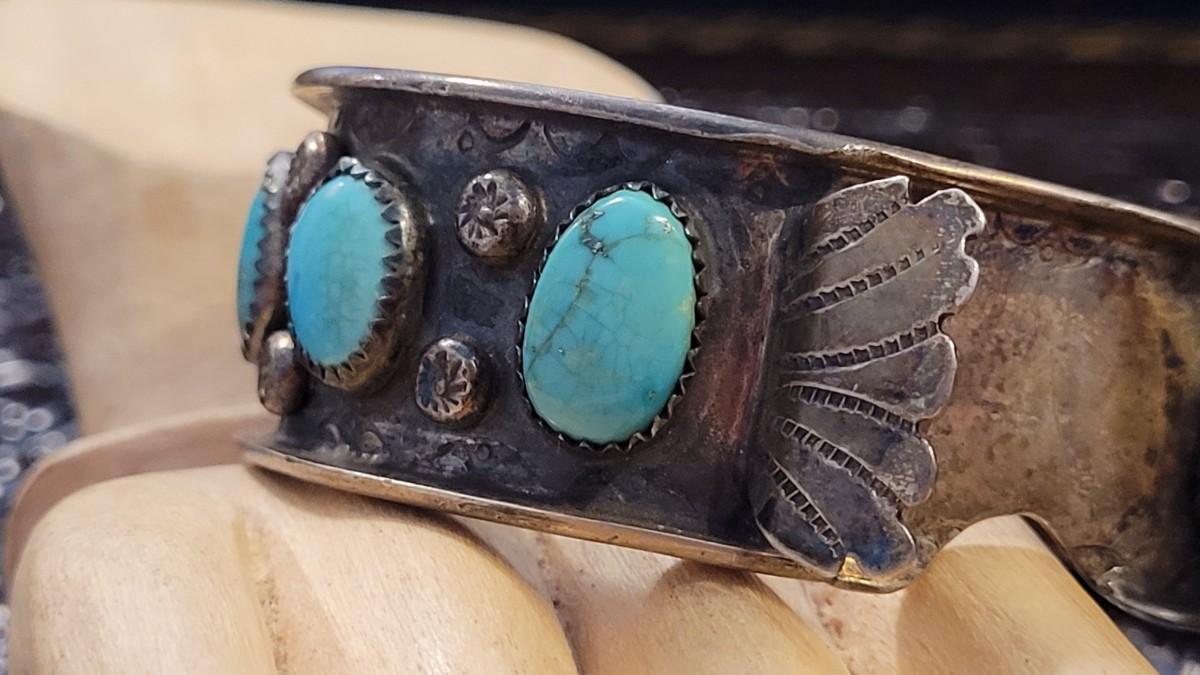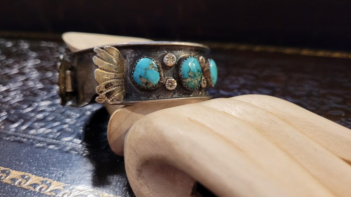 Lot 294: Vintage SIGNED Watch Cuff w/ Turquiose Stones