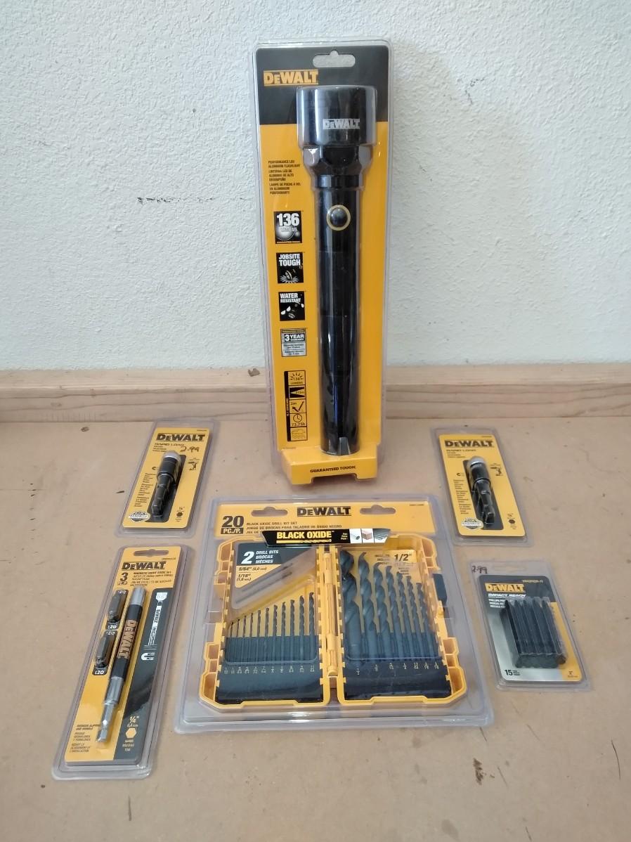 DEWALT FLASHLIGHT, DRILL BITS, AND OTHER DEWALT TOOLS