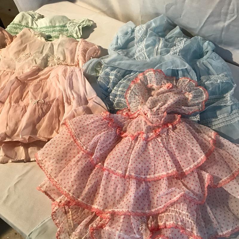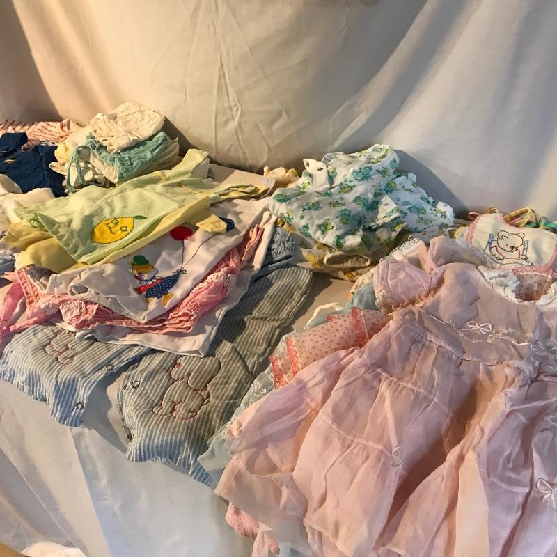 Adorable vintage infant clothing for Newborn to about 18 months. Dress your daughter up in frilly dresses, classic outfits or overalls to get dirty. Also includes some bibs, shoes and bonnets. This is a fun lot that will *almost* make you want to do it all over again! Shipping available.