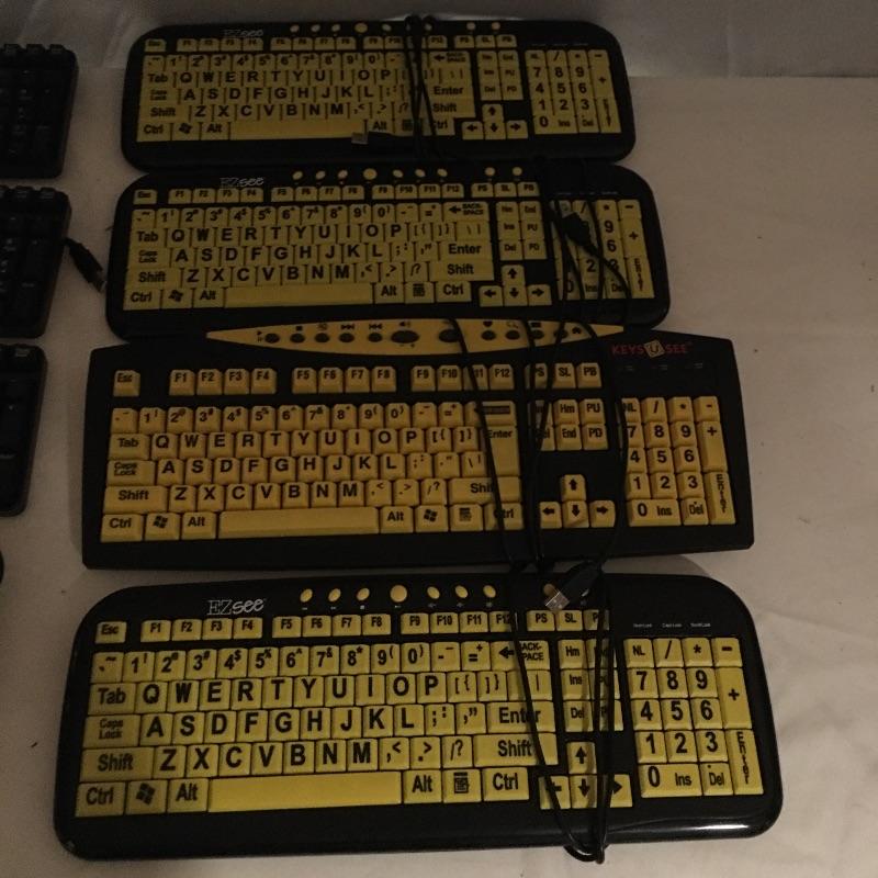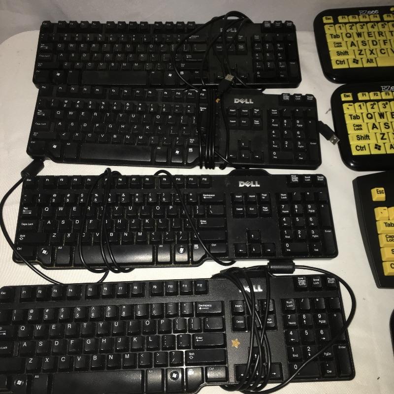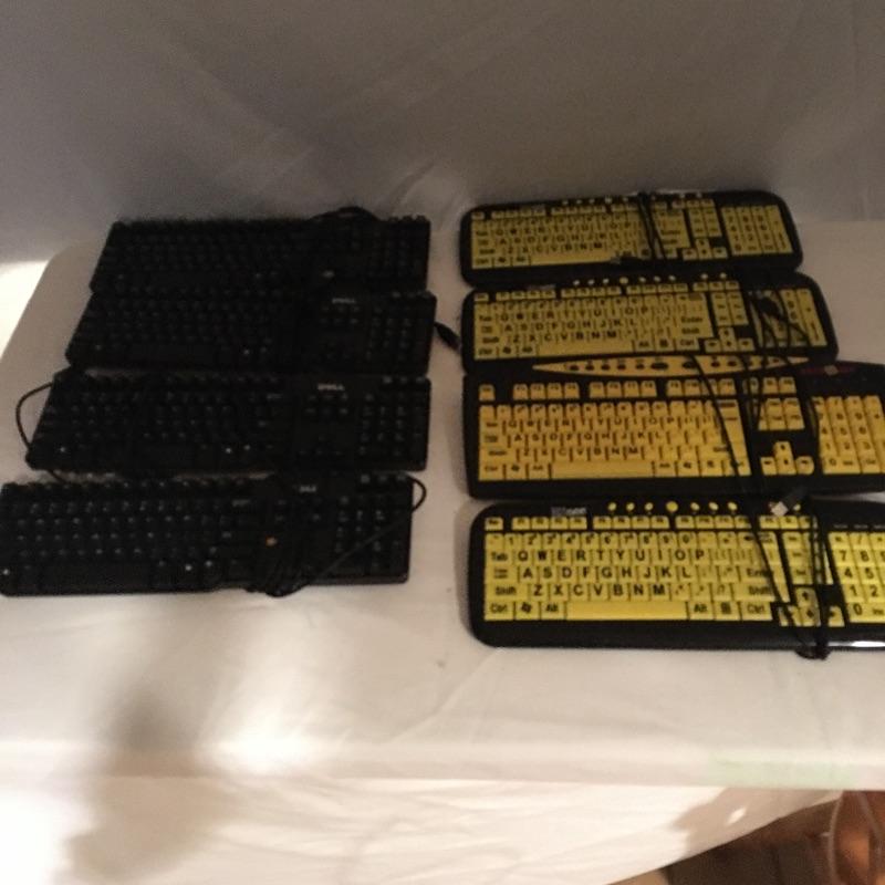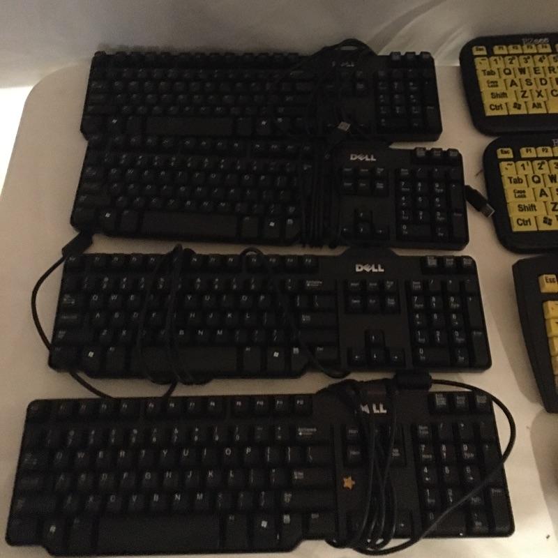 Collection of keyboards. Lot includes four Dell keyboards and four large font keyboards. A great collection for the visually impaired or the person who likes wired keyboards. Keyboards were not tested.