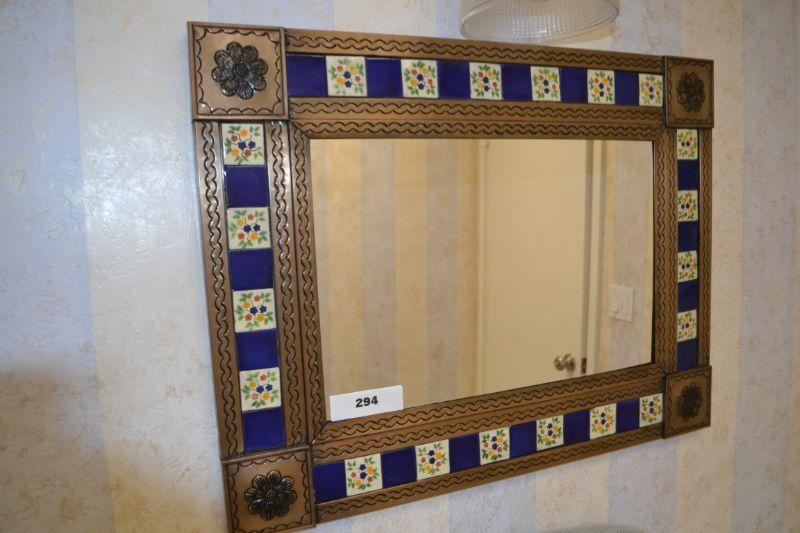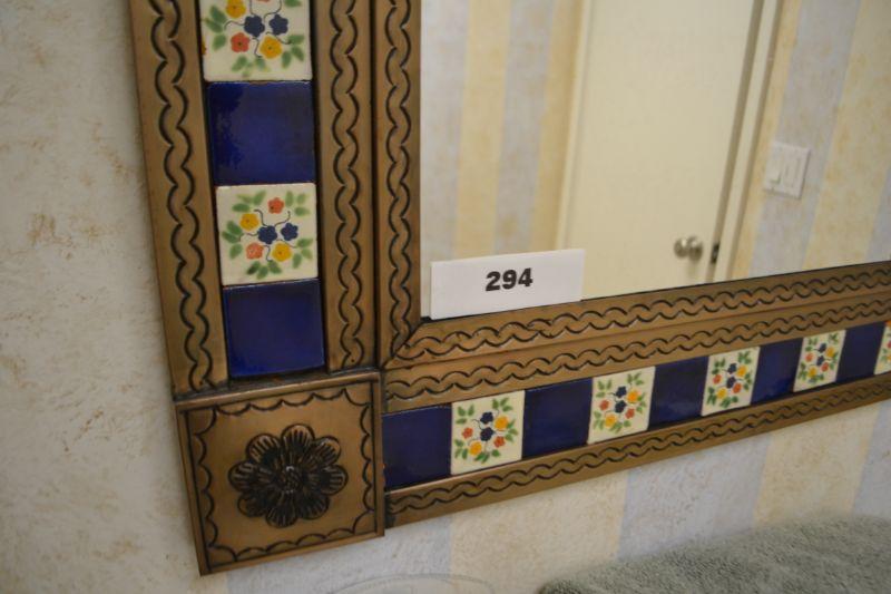 LOT 294. DECORATIVE TIN AND TILE MIRROR