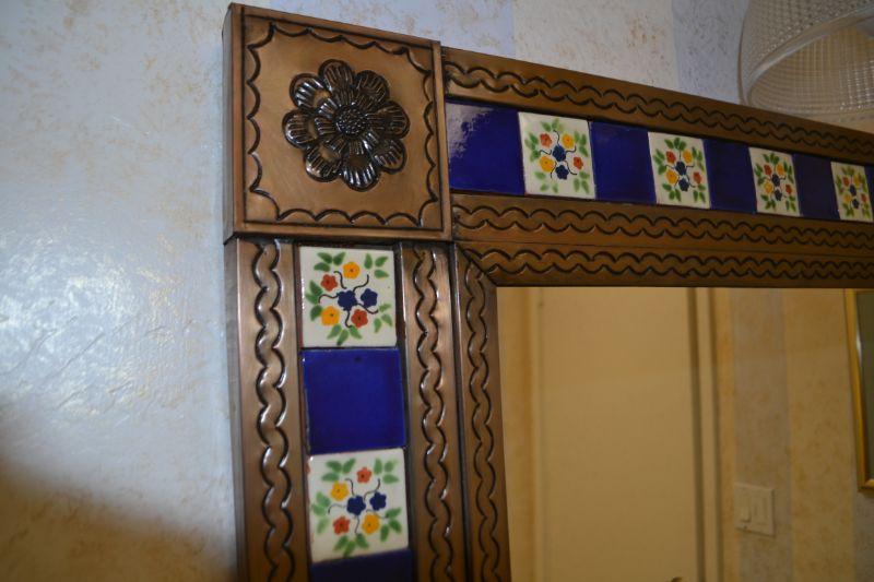 DECORATIVE TIN AND TILE MIRROR. 33" X 25"