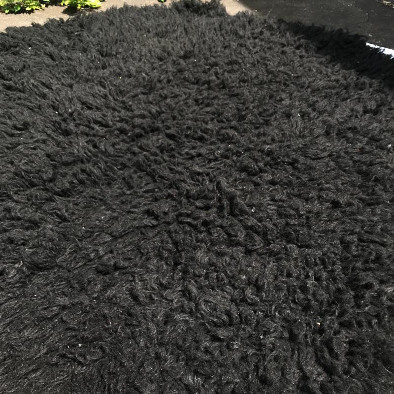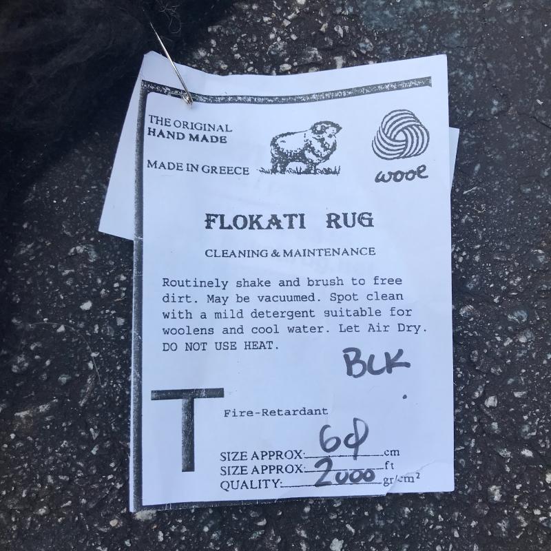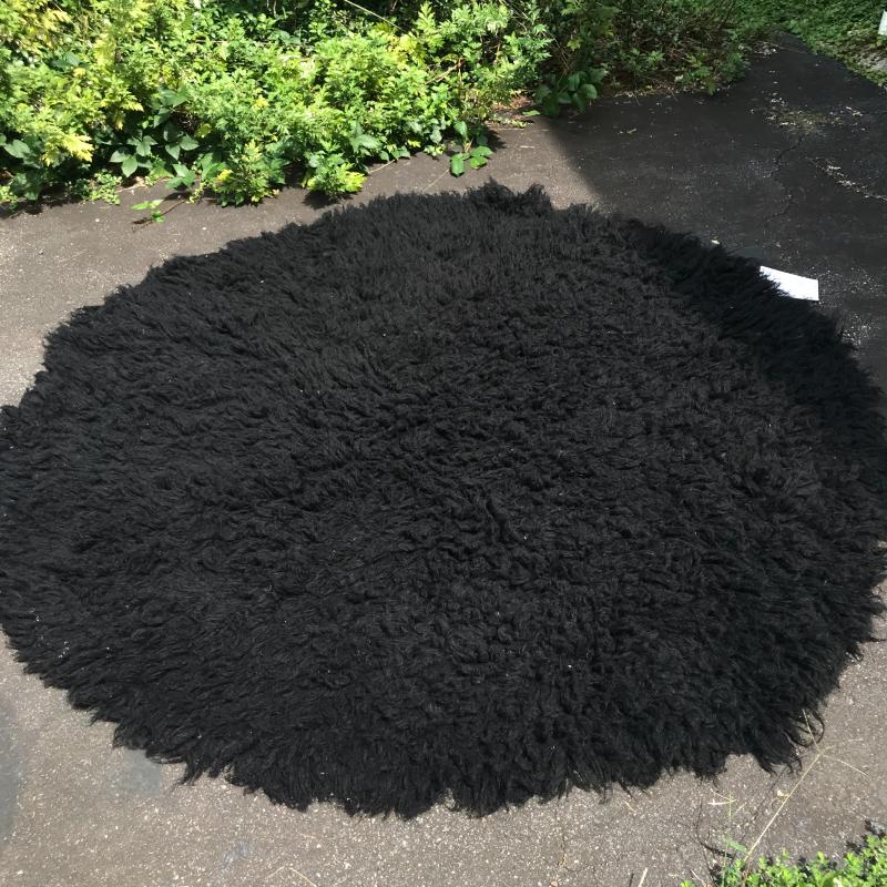 Original Flokati wool rug from Greece. Black color. Still with original tags. A little dusty from Storage. Measures 72” diameter. Shipping available or local pick up.